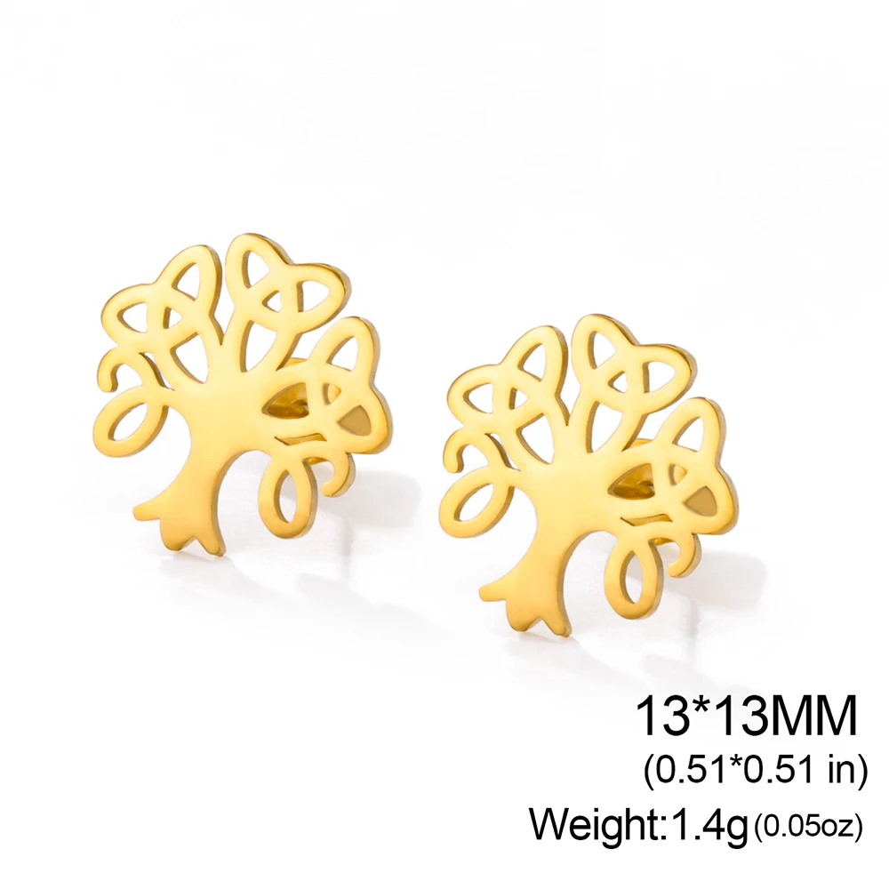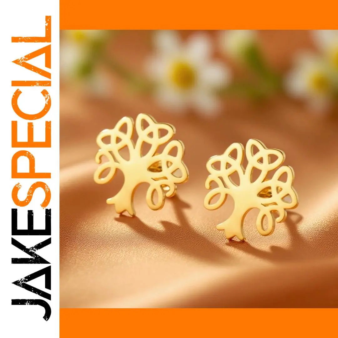 Elevate your style with these stainless steel stud earrings featuring a Tree of Life and Celtic trinity knot design, symbolizing eternal connection and family bonds. Measuring 13 x 13 mm, these unisex earrings are available in stylish gold and steel finishes, offering a timeless and elegant look. Designed with clean lines and a polished surface, they are perfect for everyday wear and all occasions. The push-back fastening ensures a secure fit for men, women, and couples, making them a versatile accessory. Crafted from durable stainless steel, these earrings combine symbolic beauty with everyday practicality, providing a meaningful addition to your jewelry collection.