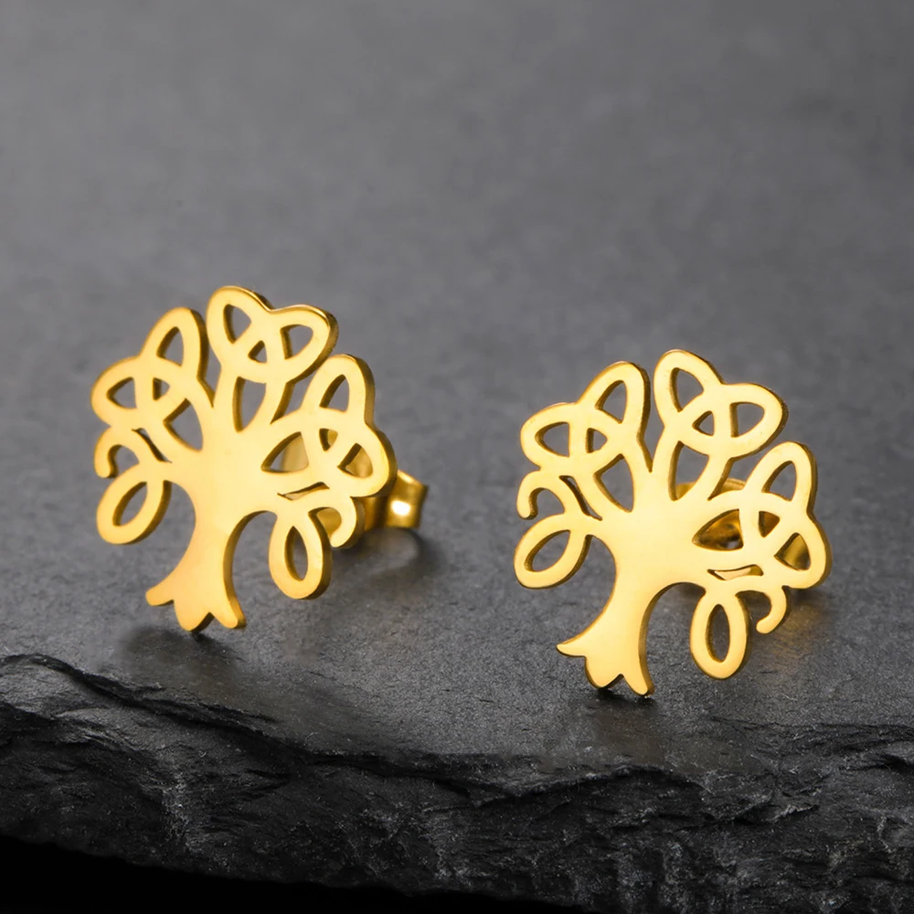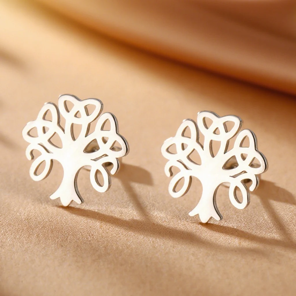 Stainless Steel Tree of Life Celtic Earrings