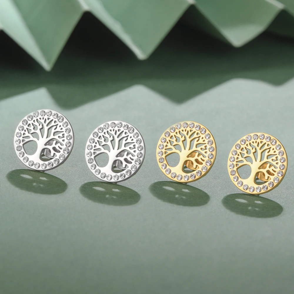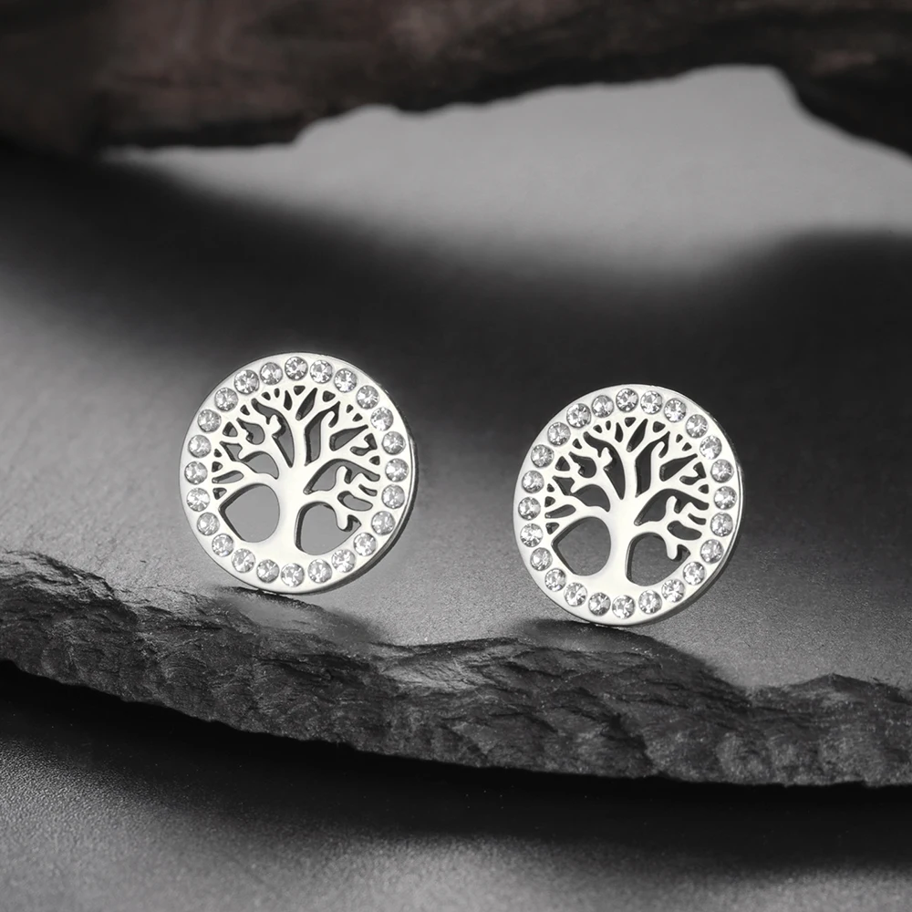 Imagine yourself wearing these beautifully crafted Tree of Life earrings, symbolizing eternal growth and family bonds. Designed from durable stainless steel, they come in sleek steel or warm gold finishes, adding a touch of sophistication to any outfit. The detailed Celtic-inspired tree features intricate branches and rounded roots, embodying vitality and strength. The sparkling zirconia stones at the center enhance their elegance, making them perfect for both everyday wear and special occasions. Lightweight and sturdy, these earrings assure comfort and lasting beauty. Their seamless design and high-quality materials reflect a meaningful style statement, enhancing your personal charm while symbolizing our deep connection to life’s continuous cycle.