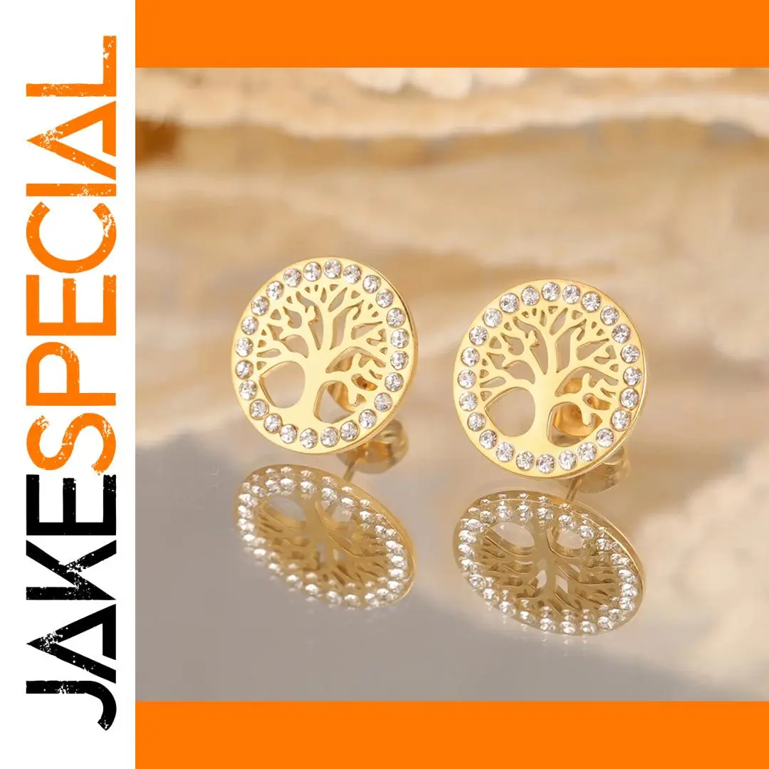 Experience everyday elegance and symbolic beauty with this pair of stainless steel and gold-tone Tree of Life earrings. Whether giving a thoughtful gift or treating yourself, they combine craftsmanship, durability, and meaningful symbolism. The intricate Celtic tree design, complemented by sparkling zirconia stones, makes these earrings a versatile accessory suitable for all occasions. Durable, stylish, and loaded with personal significance, they’re a timeless addition to any jewelry lineup that will accentuate your natural style and convey your appreciation for life's unending cycles. Don't miss out—order today and enjoy a meaningful gift for yourself or a loved one.