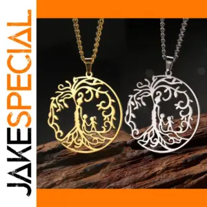Celebrate the bond of family with this stainless steel Tree of Life necklace, measuring 34 x 32 mm, symbolizing positive energy, growth, strength, rebirth, and longevity. Available in sleek steel and radiant gold tones, it features an intricate openwork design depicting a mother and two children, emphasizing love and protection. The classic style is complemented by a 45+5 cm link chain suitable for both men and women, making it perfect for anniversaries or heartfelt occasions. Crafted for durability and elegance, this fashion-forward piece offers free shipping and ships within three working days, making it a meaningful gift to cherish forever.