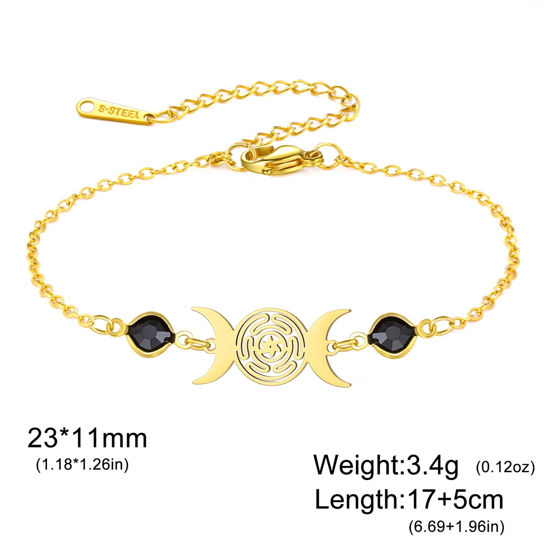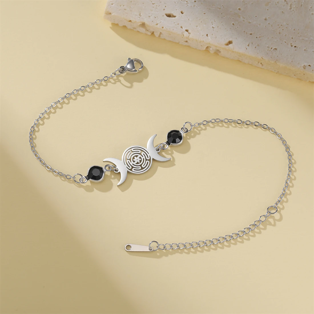 This Elegant Stainless Steel Triple Moon Goddess Bracelet