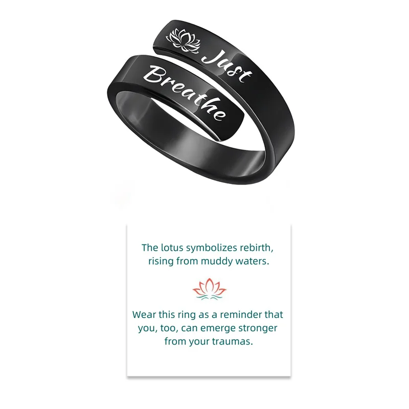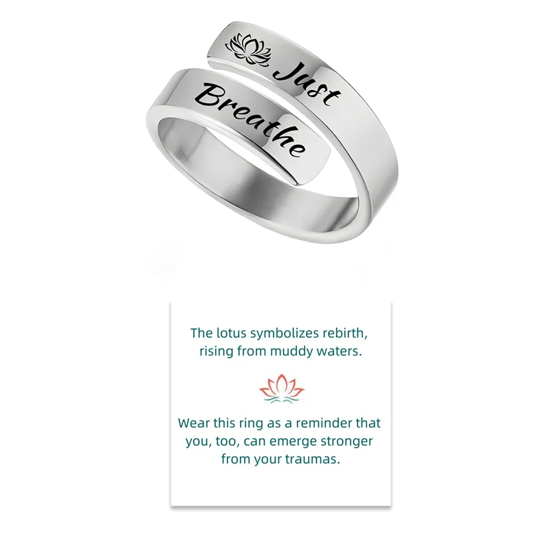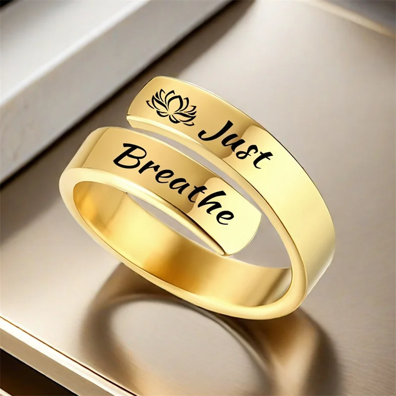 Imagine adding a touch of motivation to your daily routine with this sleek, unisex stainless steel ring. Its minimalist 2mm wide band features a modern geometric shape pattern that complements any outfit. The polished, reflective surface exudes contemporary elegance while offering a subtle yet meaningful message. Engraved with “Just Breathe” and a delicate lotus outline, this accessory serves as a daily reminder to stay calm and centered. Perfect for both men and women, it’s a versatile piece suitable for various occasions—be it casual, party, or moments of self-encouragement. Its durable stainless steel construction and trendy design ensure long-lasting style and comfort, making it an essential addition to any jewelry collection.