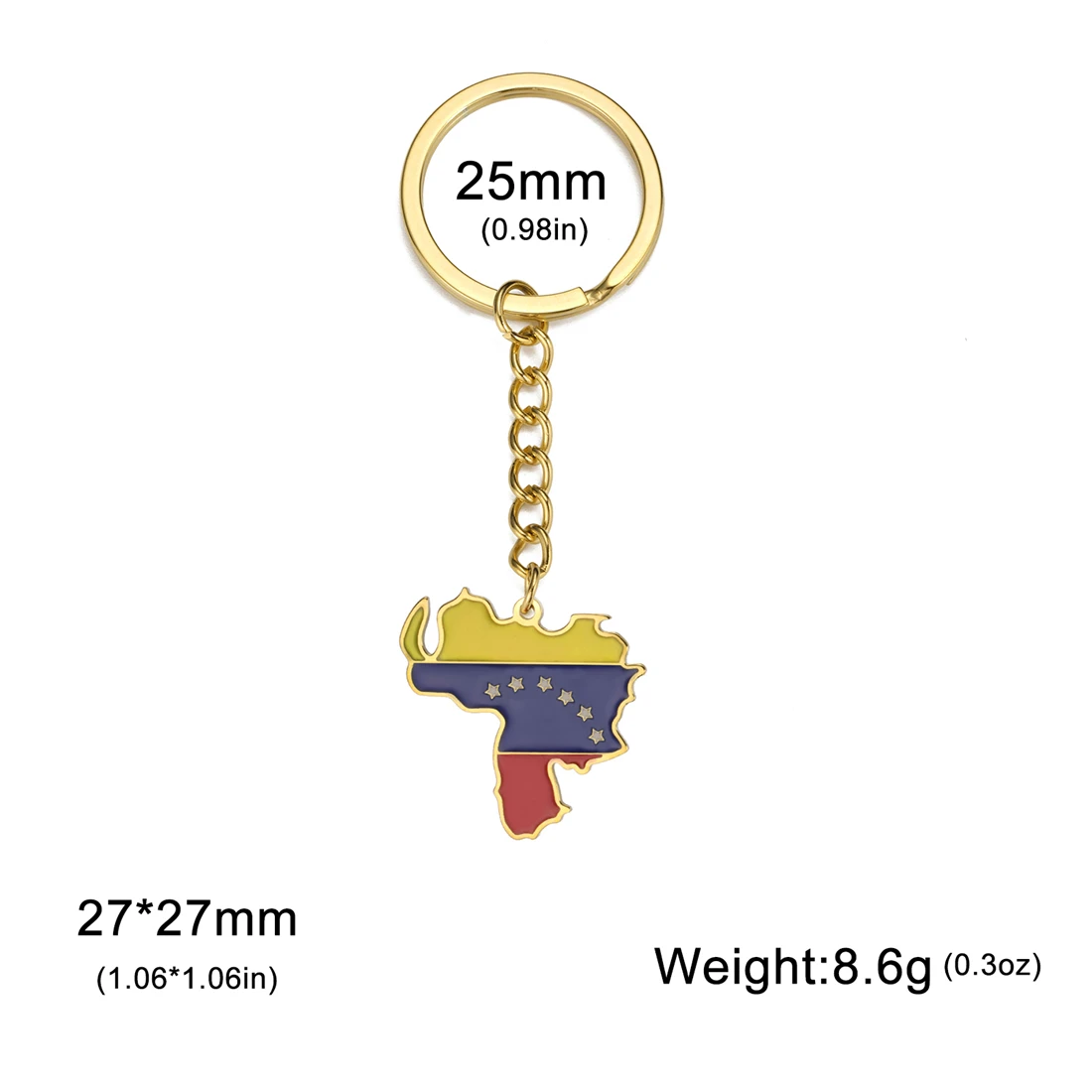 Experience a touch of patriotic elegance with this stainless steel keychain, featuring a vibrant drip oil Venezuela map pendant. Measuring approximately 27 by 27 millimeters, this accessory combines a fashionable vintage style with minimalist design elements. Its polished finish and dual color options—gold-tone and silver-tone—highlight its timeless appeal. Crafted from high-quality stainless steel, it offers corrosion resistance, durability, and a non-allergenic surface, making it both a practical and stylish choice for everyday use. Whether you’re celebrating a special occasion or simply love showcasing national pride, this keychain is a versatile accessory perfect for gifting or personal use. Its refined appearance complements any outfit while serving as a meaningful symbol of heritage. Feel confident in your choice to carry a piece of Venezuela wherever you go.