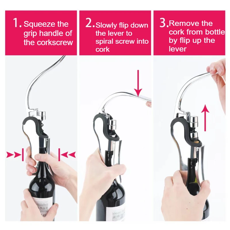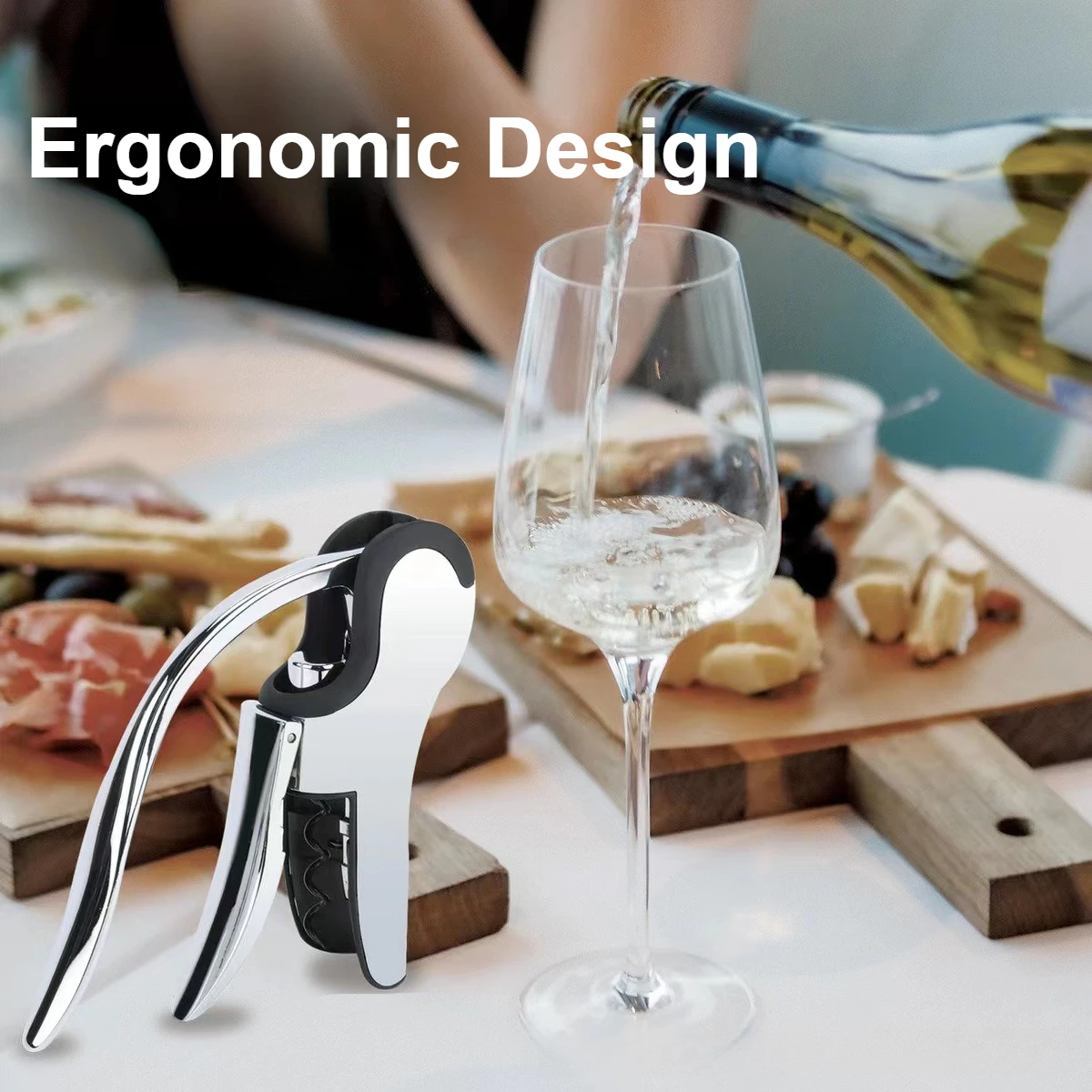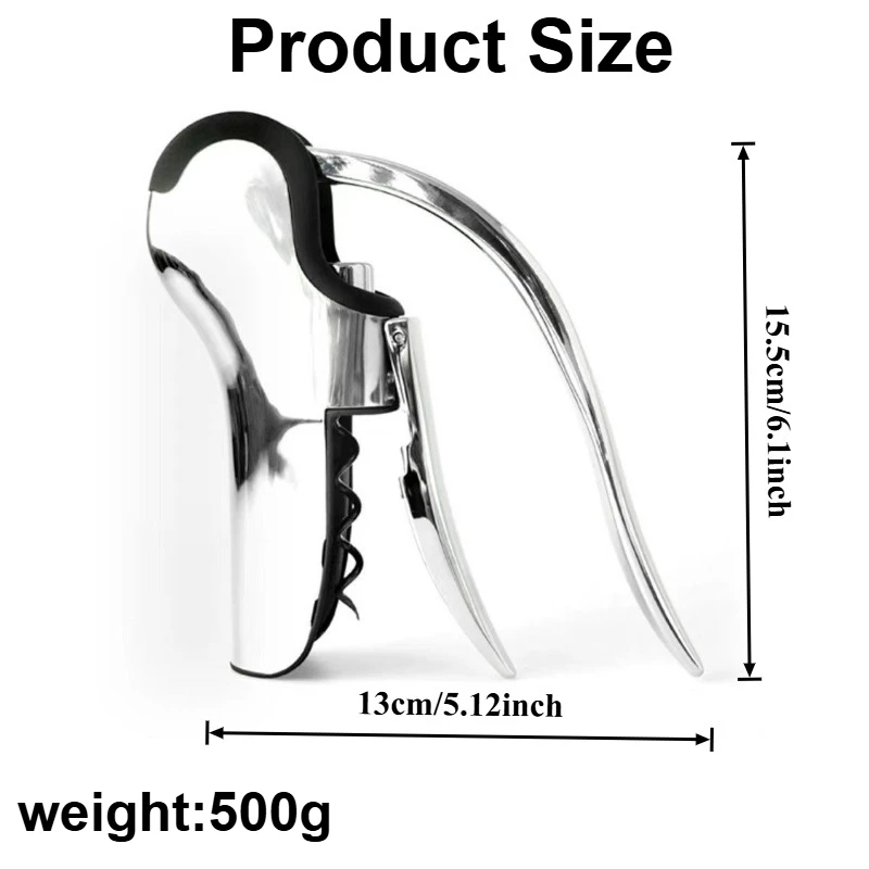 Experience effortless wine opening with this sleek, silver-colored stainless steel vertical lever corkscrew measuring 13cm x 4cm x 15.5cm. Its nonstick-coated, carbon-steel screw mechanism fits all wine bottle sizes, while the ergonomic lever pump and built-in foil cutter make uncorking quick and easy. Designed for durability, it has been independently tested for 20,000 cork pulls, ensuring long-lasting performance. The minimalist, modern design with smooth curves adds a touch of elegance to your wine accessories, providing a seamless, professional-level experience at home or in your bar.
