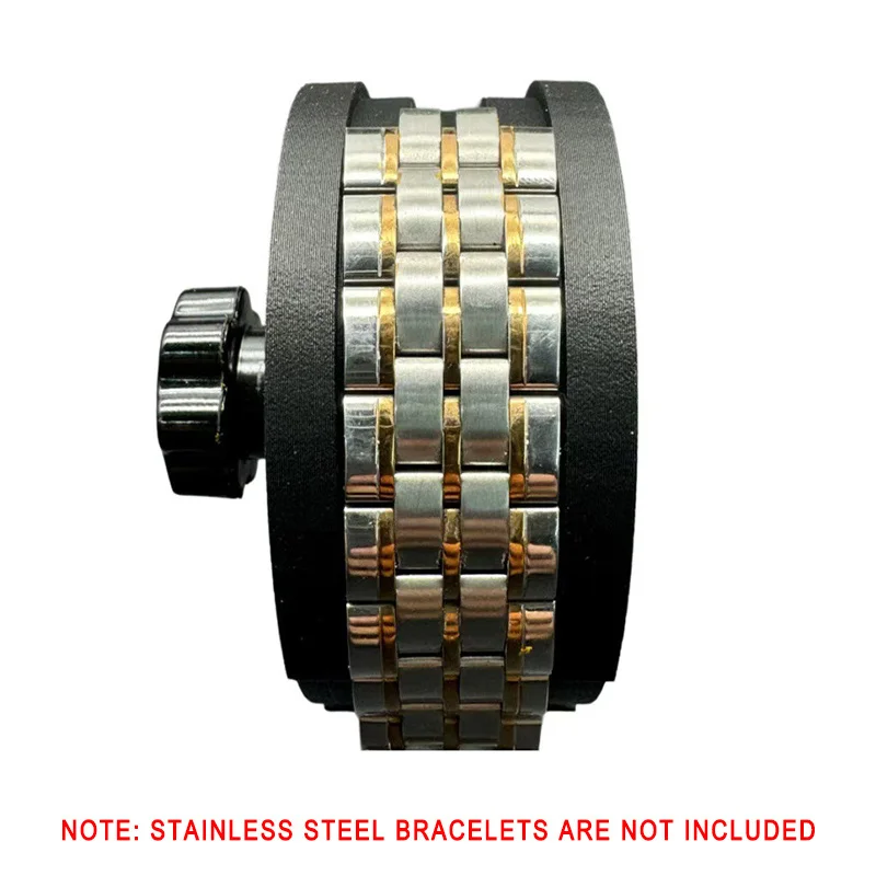 - The textured black surface of the wheel, featuring circumferential notches, enhances grip and helps secure watch bracelets firmly in place without causing scratches or damage.