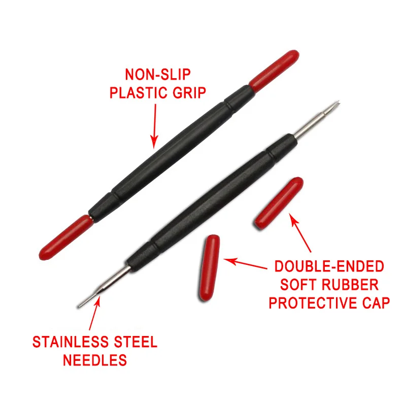 - The working ends include precisely crafted flat blades and V-shaped push pins, perfect for engaging spring bars in various watch models with minimal effort.