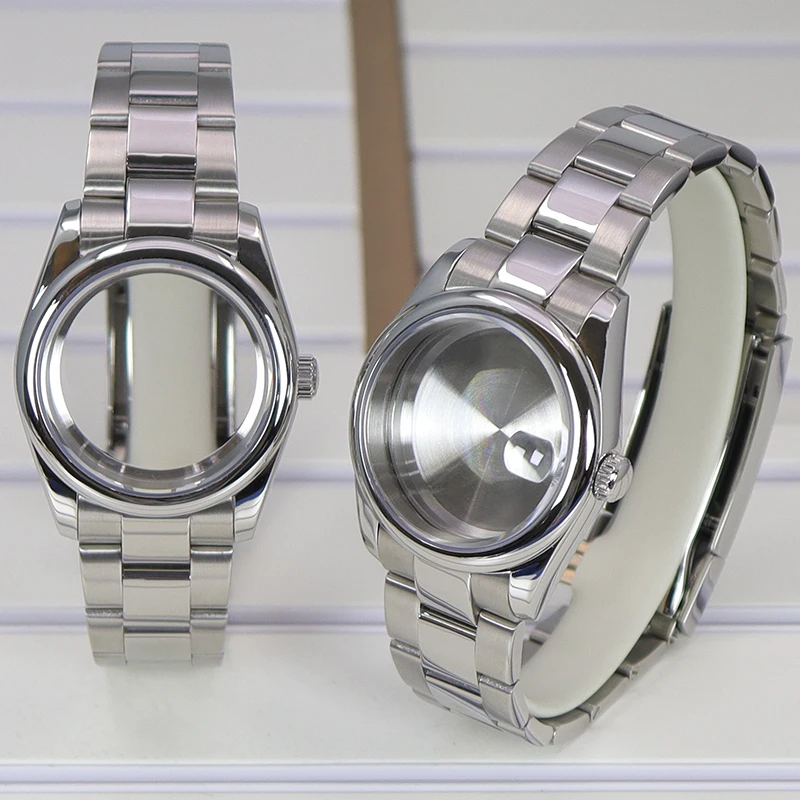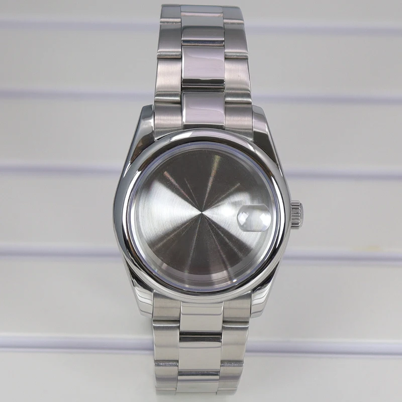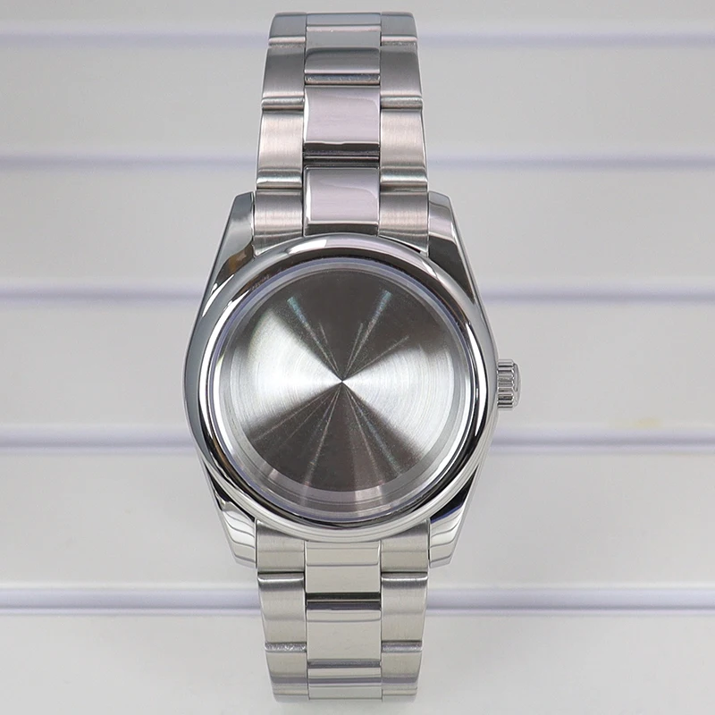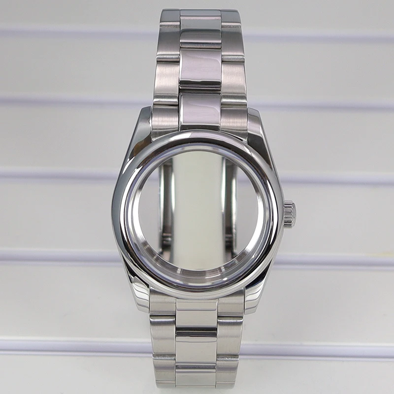 Experience a sleek, modern aesthetic with this stainless steel watch case available in 36mm or 39mm diameter and approximately 11.8mm to 12.2mm thickness. Crafted from durable 316L stainless steel, it features scratch-resistant sapphire crystal glass for clarity and longevity. Compatible with Miyota 8215, 8205, and 4R36 series movements (including NH34, NH35, NH36, NH38), it supports a 28.5mm dial and fits straps with a 20mm width. Designed for water resistance up to 100 meters, it offers options for transparent or solid stainless steel case backs. Included components comprise the case, bracelet, crown, cover, movement cushion mount, rubber seal, and spring bars, making it a perfect choice for a high-quality, customizable wristwatch.