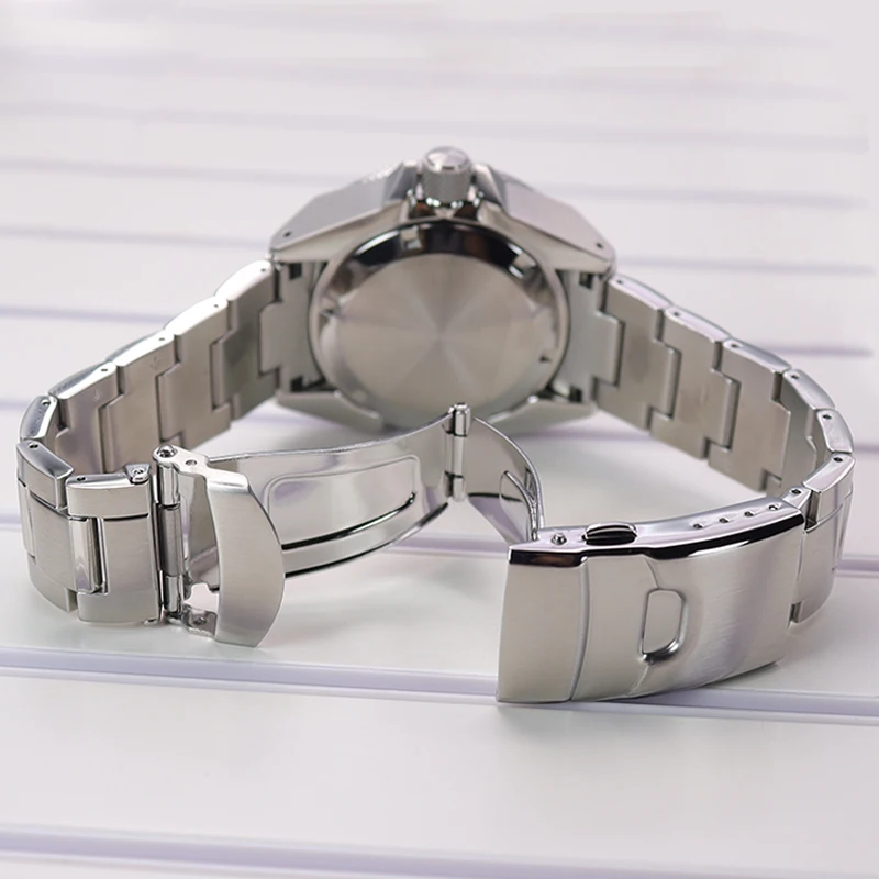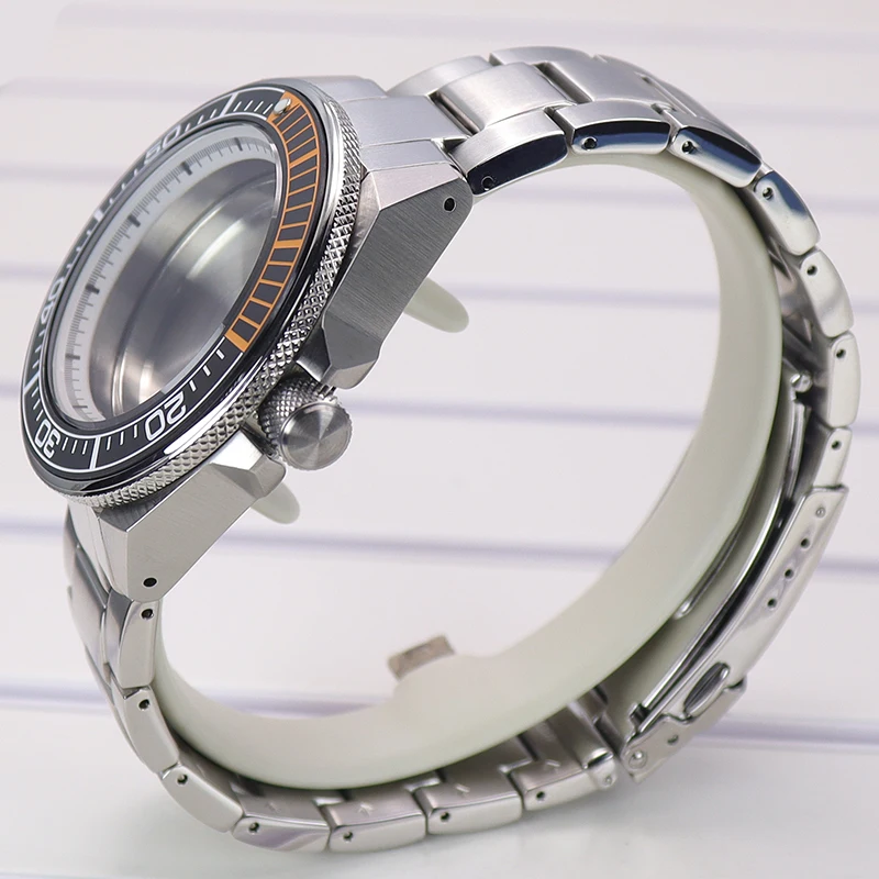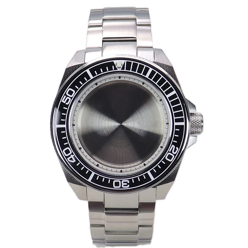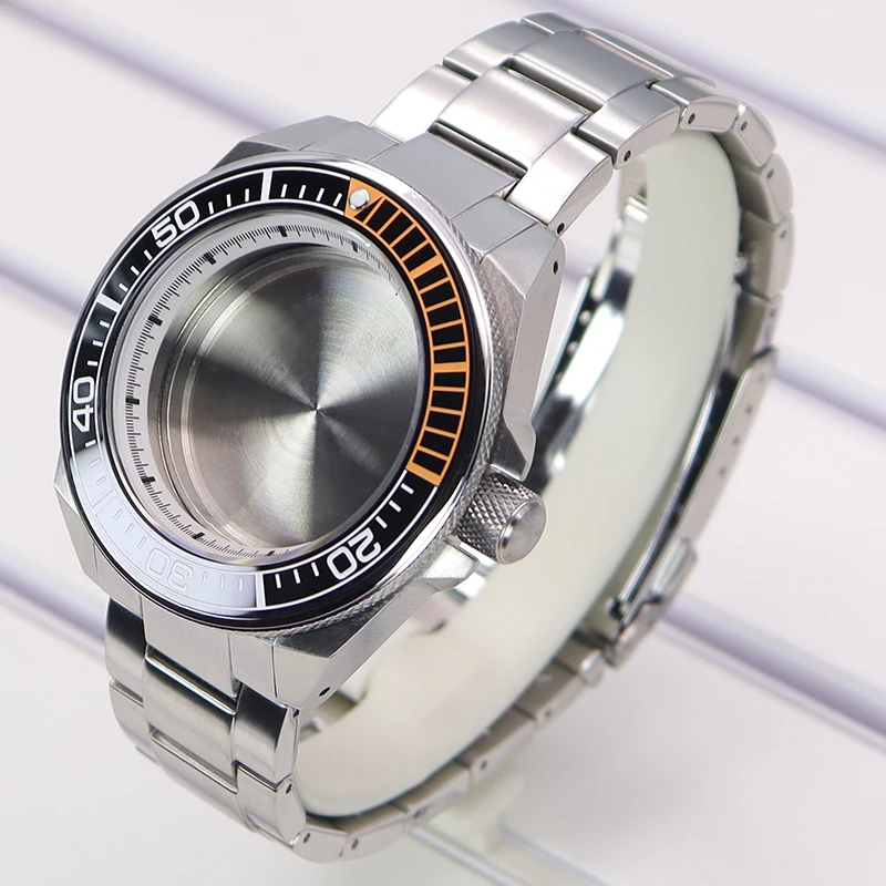 Upgrade your watch collection with this high-quality 43.8mm Stainless Steel watch case, crafted for durability and style. Made from premium 316L stainless steel, it features a sleek, polished finish that complements modern designs. The case boasts a sapphire crystal glass front for superior scratch resistance and clarity. Its ceramic bezel adds a touch of elegance while ensuring longevity. Compatible with NH34, NH35, NH36, and NH38 movements, as well as 28.5mm dials and 22mm straps, this case is perfect for customizing or restoring your timepiece. The crown is positioned at 3 o'clock, supporting a 10 ATM waterproof rating—up to 100 meters. Secured with a screw-in crown and a solid screw bottom cover, offering robust protection for adventurous wear.