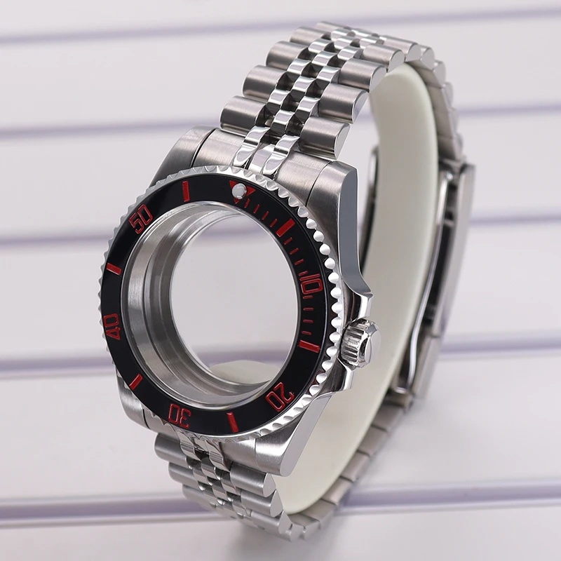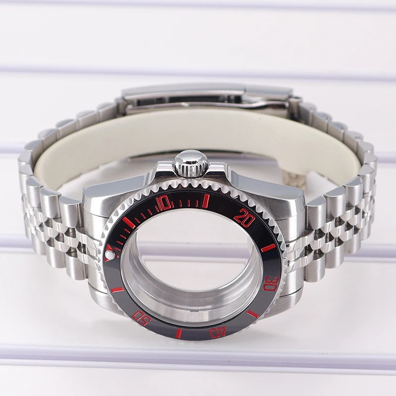 This 40mm stainless steel watch case features a polished silver finish, crafted from durable 316L stainless steel with a 13.2mm thickness and a sapphire crystal glass for scratch resistance. Designed for versatility, it accommodates movements such as NH35, NH36, NH34, NH38, 4R36, Miyota 8215, 8205, ETA 2824, and PT5000, suitable for dials measuring 28.5mm to 30.5mm. With a 20mm band width and a waterproof depth of 200 meters, this case combines robustness with elegance. It includes options for transparent or solid stainless steel covers, along with a bracelet, crown, movement buffer seat, rubber seal, and two spring strips, making it ideal for both professional and recreational use.