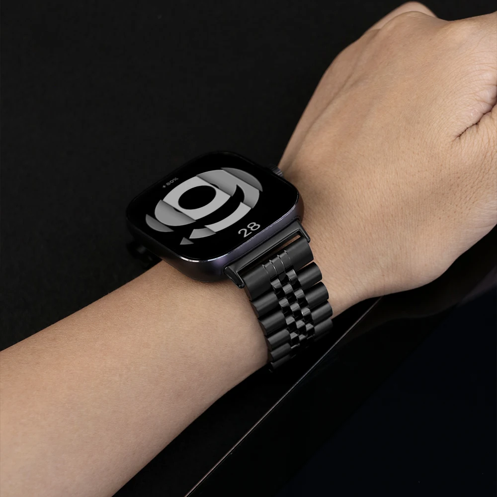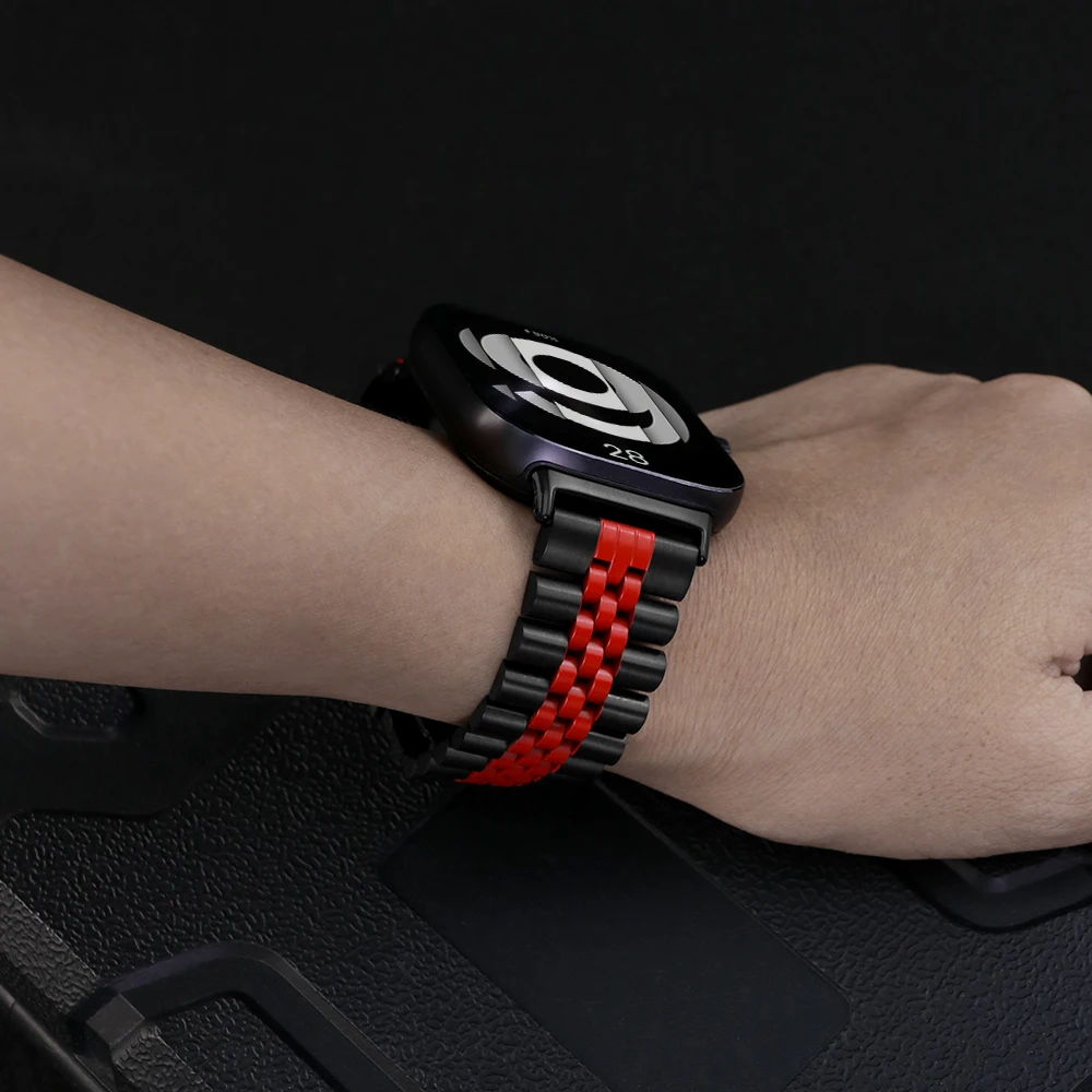 Step into luxury with this high-quality stainless steel watchband designed for Redmi Watch 4, 5, 6, 8 Pro, and 9 Pro models. Its sleek, unisex design offers versatility and sophistication, making it perfect for both casual and formal settings. The band’s smooth stainless steel finish provides durability, resistance to tarnishing, and a polished look that elevates your smartwatch’s aesthetic. Available in multiple colors including classic black, eye-catching black-orange, bold black-red, sophisticated silver, and modern titanium, you can effortlessly match your style. The adjustable strap ensures a comfortable fit for every wrist size. With its secure clasp, this band guarantees your watch stays firmly in place throughout your day, combining style with functionality.