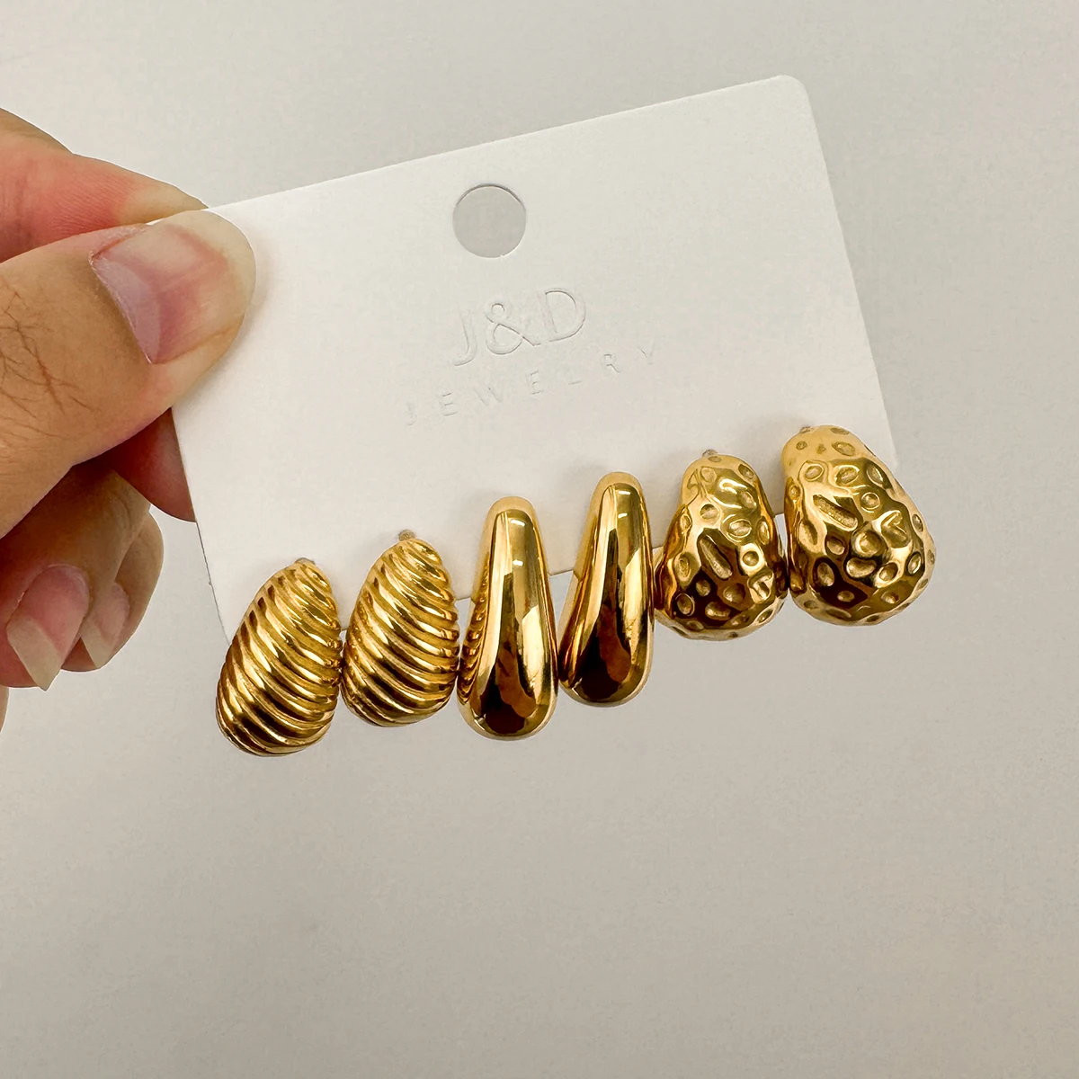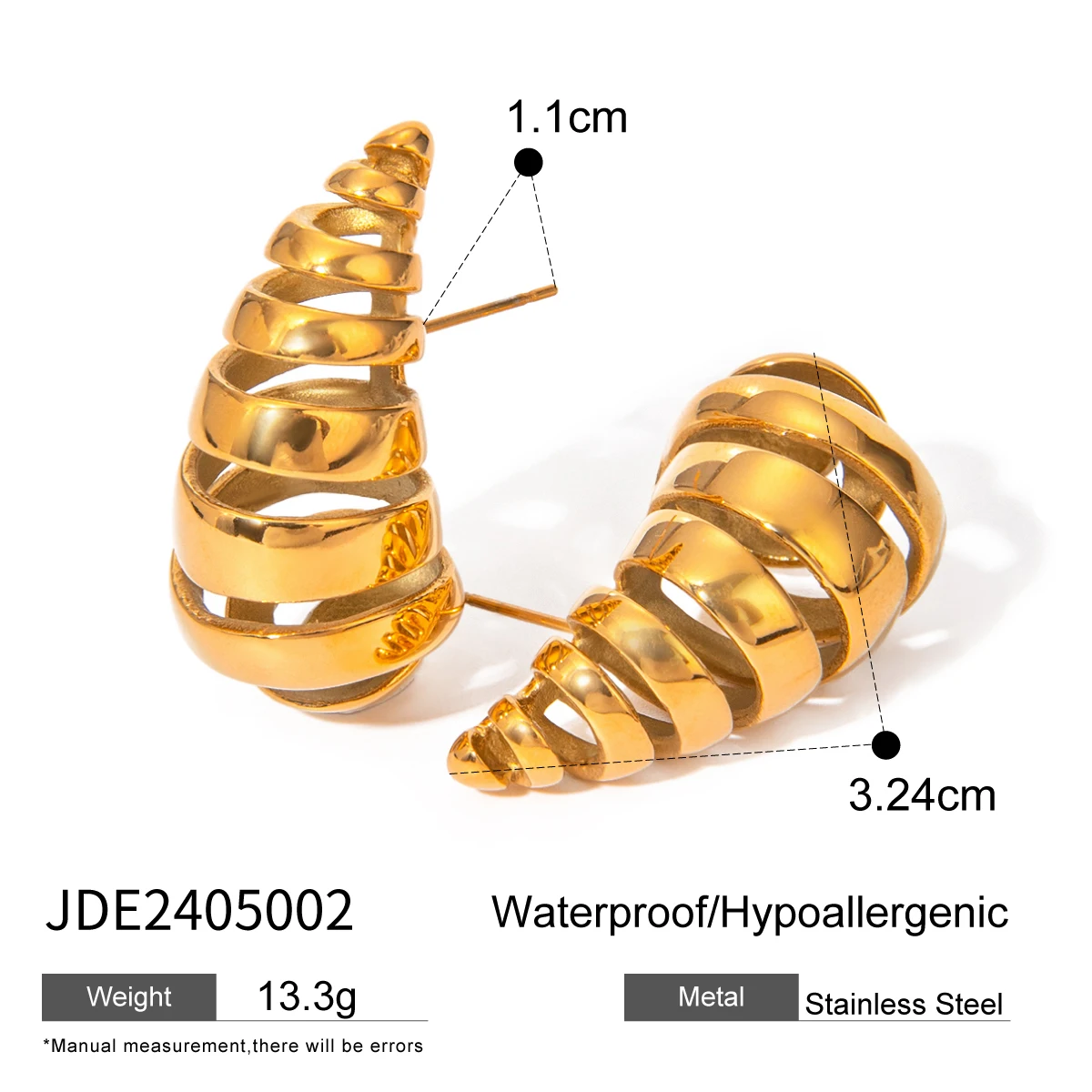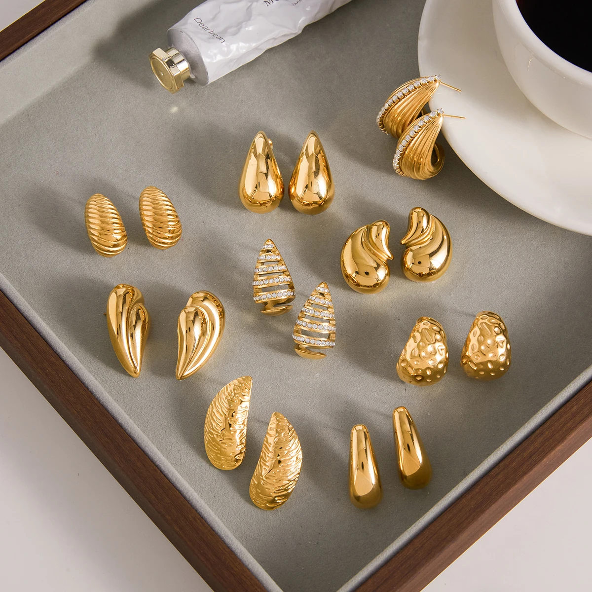 Elevate your style with these stainless steel stud earrings, featuring a sleek water drop shape with striped hollow design and a luxurious platinum finish. Designed for a trendy and sophisticated look, they are equipped with secure screw-back fastening for a comfortable fit. Available in multiple metal color options, these fashion-oriented earrings are perfect for women seeking modern, versatile accessories. Crafted from high-quality stainless steel with no harmful chemicals, they combine durability with elegance, making them an ideal addition to your jewelry collection for everyday wear or special occasions. Their refined design effortlessly complements any outfit with a touch of contemporary luxury.