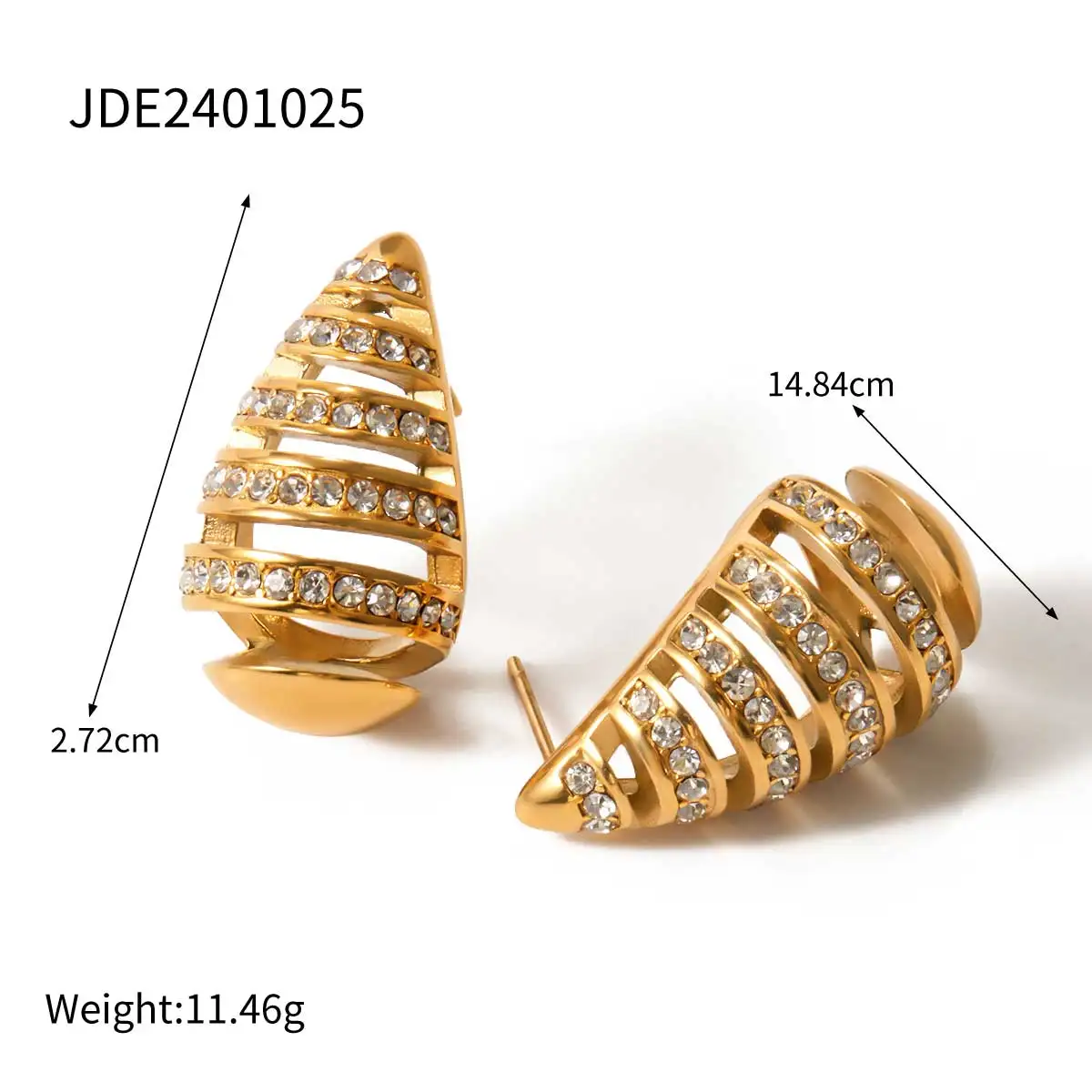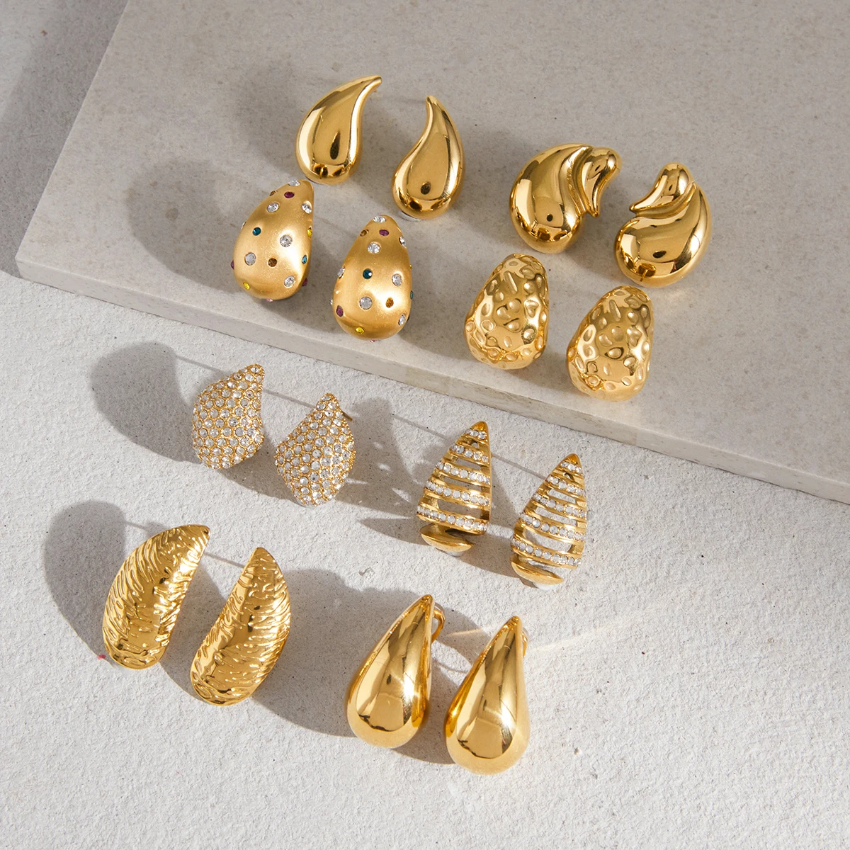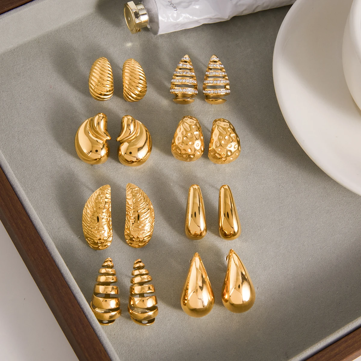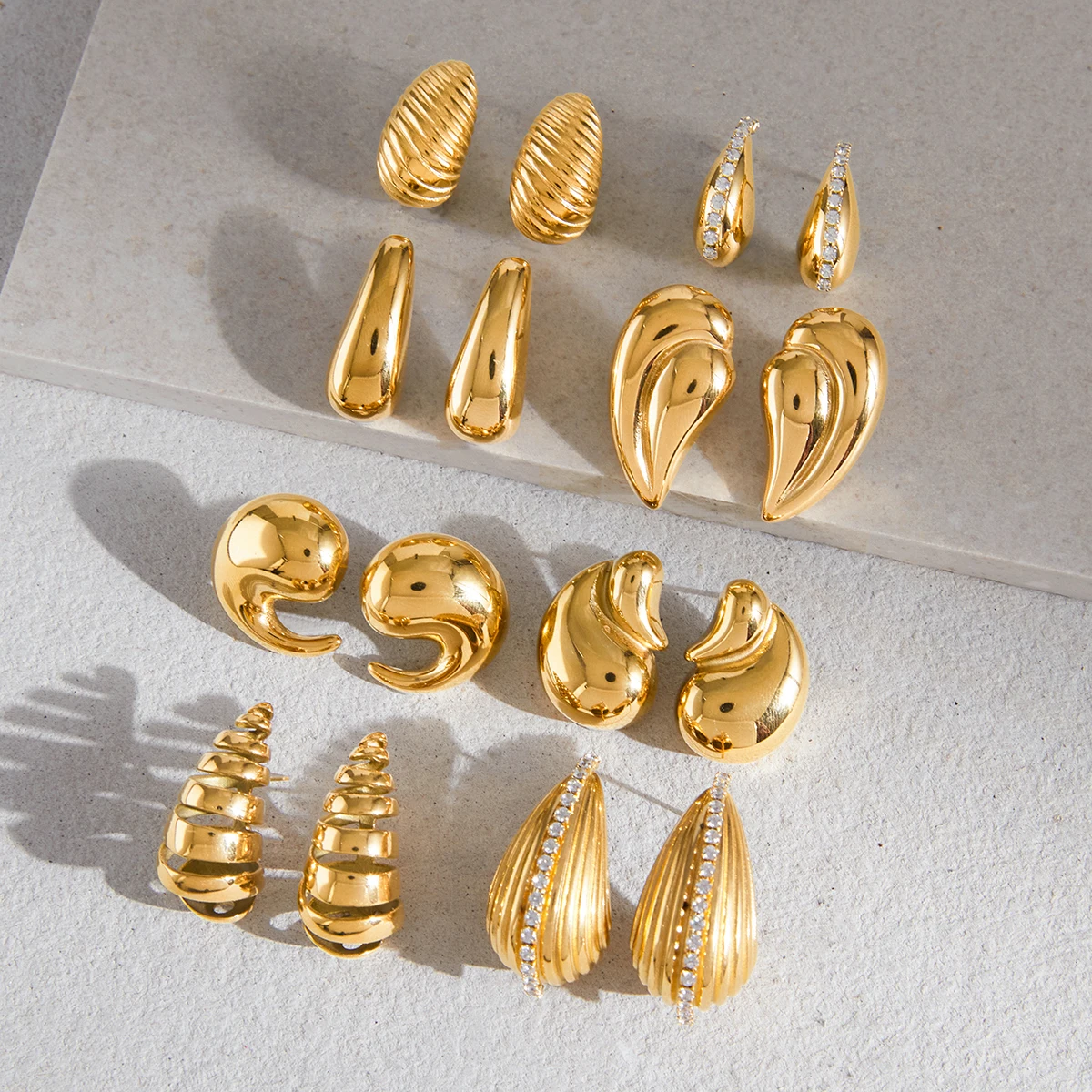 Elevate your style with these stainless steel stud earrings, featuring a sleek water drop shape with striped hollow design and a luxurious platinum finish. Designed for a trendy and sophisticated look, they are equipped with secure screw-back fastening for a comfortable fit. Available in multiple metal color options, these fashion-oriented earrings are perfect for women seeking modern, versatile accessories. Crafted from high-quality stainless steel with no harmful chemicals, they combine durability with elegance, making them an ideal addition to your jewelry collection for everyday wear or special occasions. Their refined design effortlessly complements any outfit with a touch of contemporary luxury.