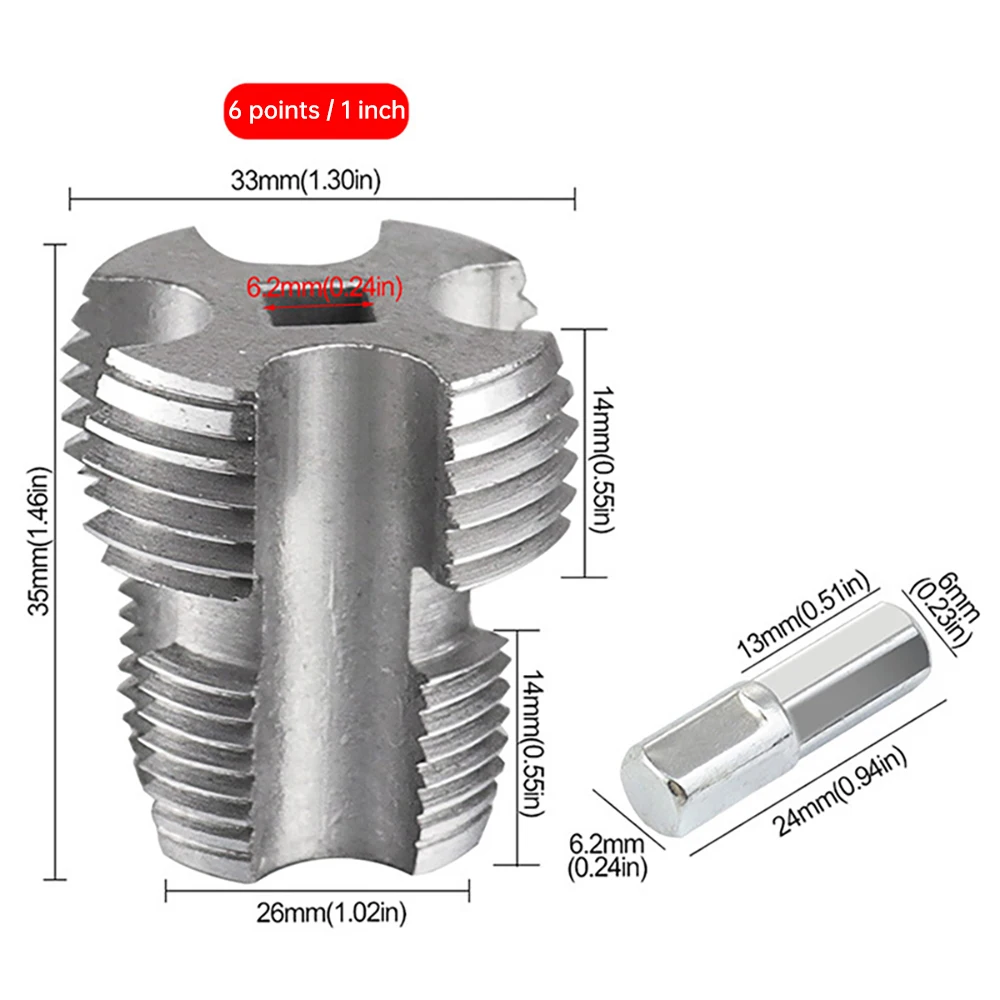 Transform your plumbing projects with this professional-grade internal thread opener crafted specifically for PVC and water pipes. Made from durable stainless steel, it boasts a sleek, polished finish that reflects its industrial strength and precision engineering. Its sharp, deep-textured threading ridges ensure burr-free, efficient, and consistent internally threaded holes, making pipe connections straightforward and secure. The tool’s robust design features square-shaped openings at the top and a central hole, allowing easy attachment to hand drills or electric screwdrivers. Whether you're installing faucets or repairing water lines, this threader delivers reliable performance. With options for 4-point or 6-point configurations and compatibility with 1-inch diameter pipes, it simplifies your plumbing tasks with professional results every time.