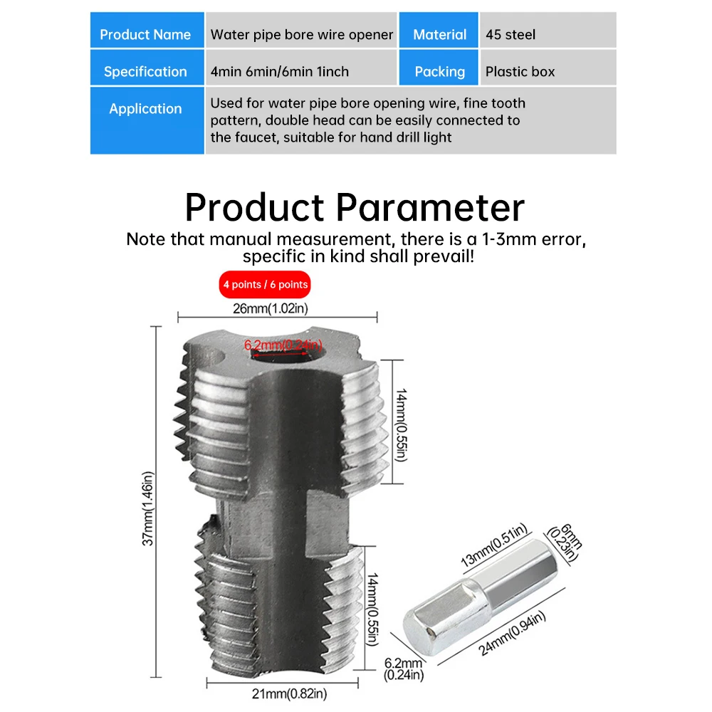 - Supports fast, standard internal threading process compatible with hand drills and electric tools for quick, professional results.