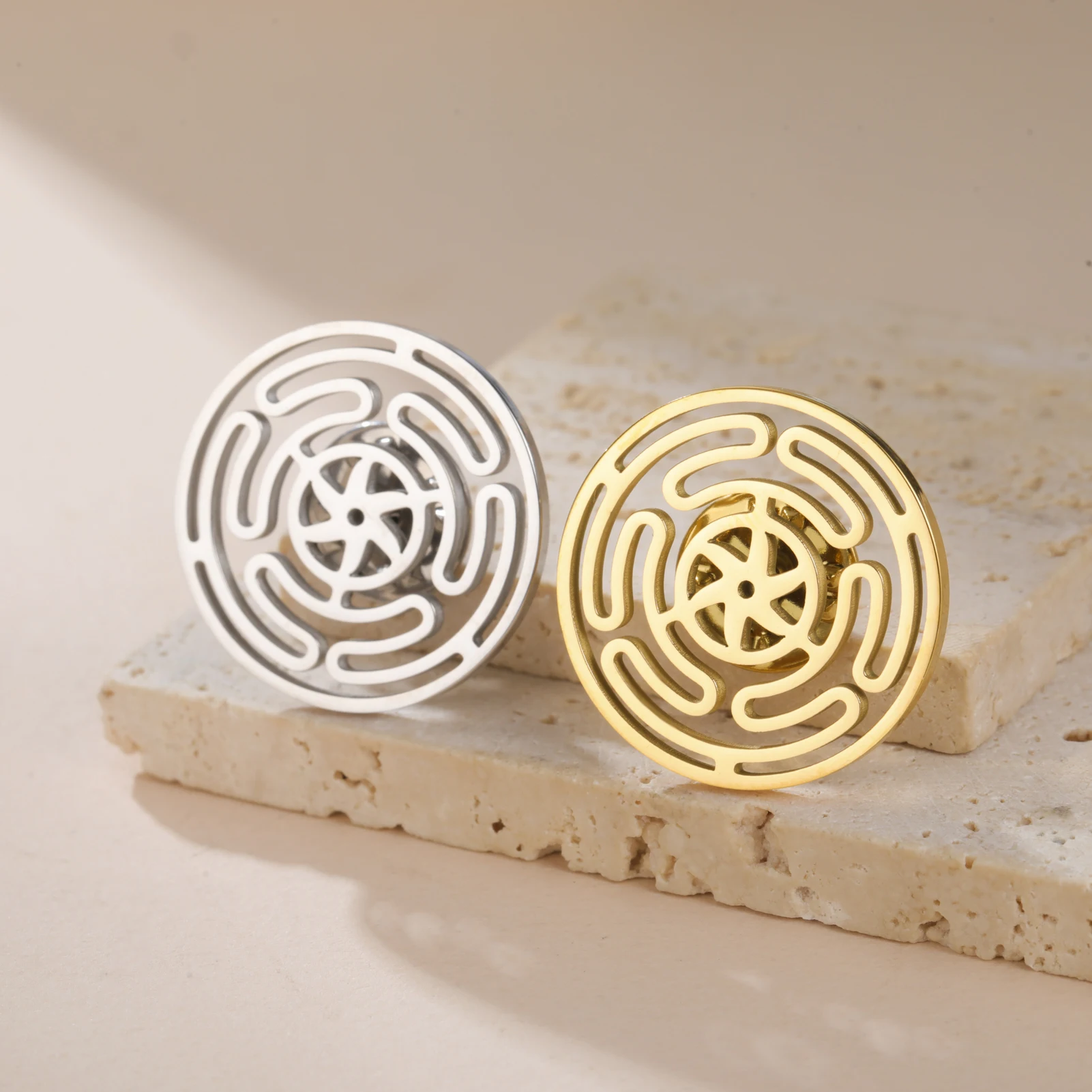 Imagine adding a touch of vintage elegance to your everyday style with this exquisite Wheel Of Hecate Brooch. Crafted from high-quality stainless steel, it offers a shiny, reflective finish that captures light beautifully. The intricate, circular maze pattern evokes a timeless sense of mystery and symbolism, inspired by the powerful “Wheel Of Hecate” motif. Its small, round shape (25mm by 25mm) makes it a subtle yet eye-catching accessory perfect for pairing with any outfit, especially when attached to a black ribbed sweater. Whether you're looking for a meaningful gift or a unique decorative piece for yourself, this brooch ensures durability, hypoallergenic comfort, and a vintage charm that lasts.