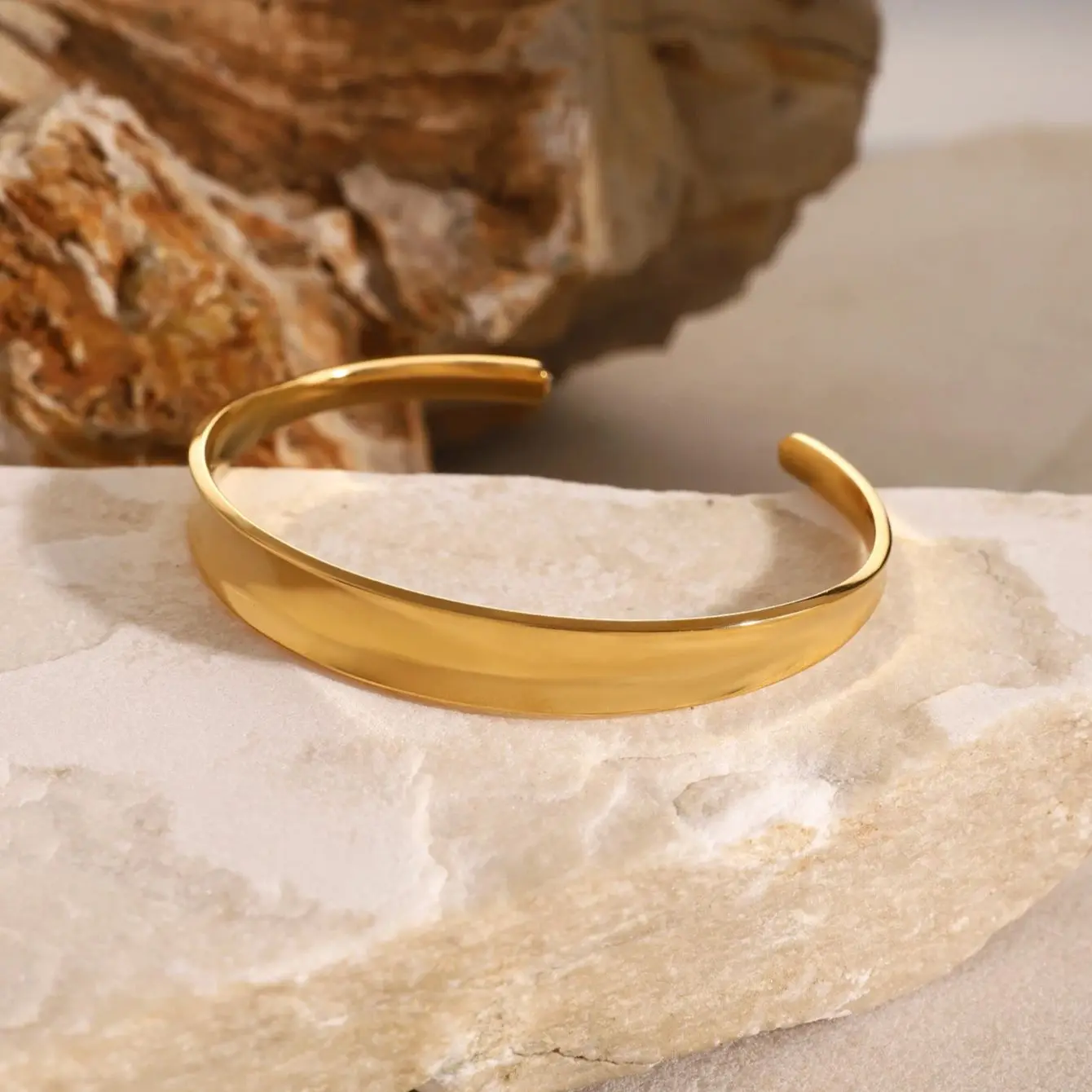 Experience timeless sophistication with this stunning open-ended stainless steel women's bracelet. Crafted for durability and style, it features a sleek, curved design with a smooth, glossy surface that captures light beautifully. The warm gold-tone finish exudes luxury, while the silver option provides classic versatility. Its minimalist, modern aesthetic makes it perfect for both everyday wear and special occasions. Designed to be easy to slip on and off, the bracelet offers a comfortable fit without sacrificing elegance. Waterproof and resilient, this accessory remains radiant and tarnish-free even in various conditions. Add a refined touch to your wardrobe and enjoy wearing a jewelry piece that embodies both simplicity and high-quality craftsmanship.