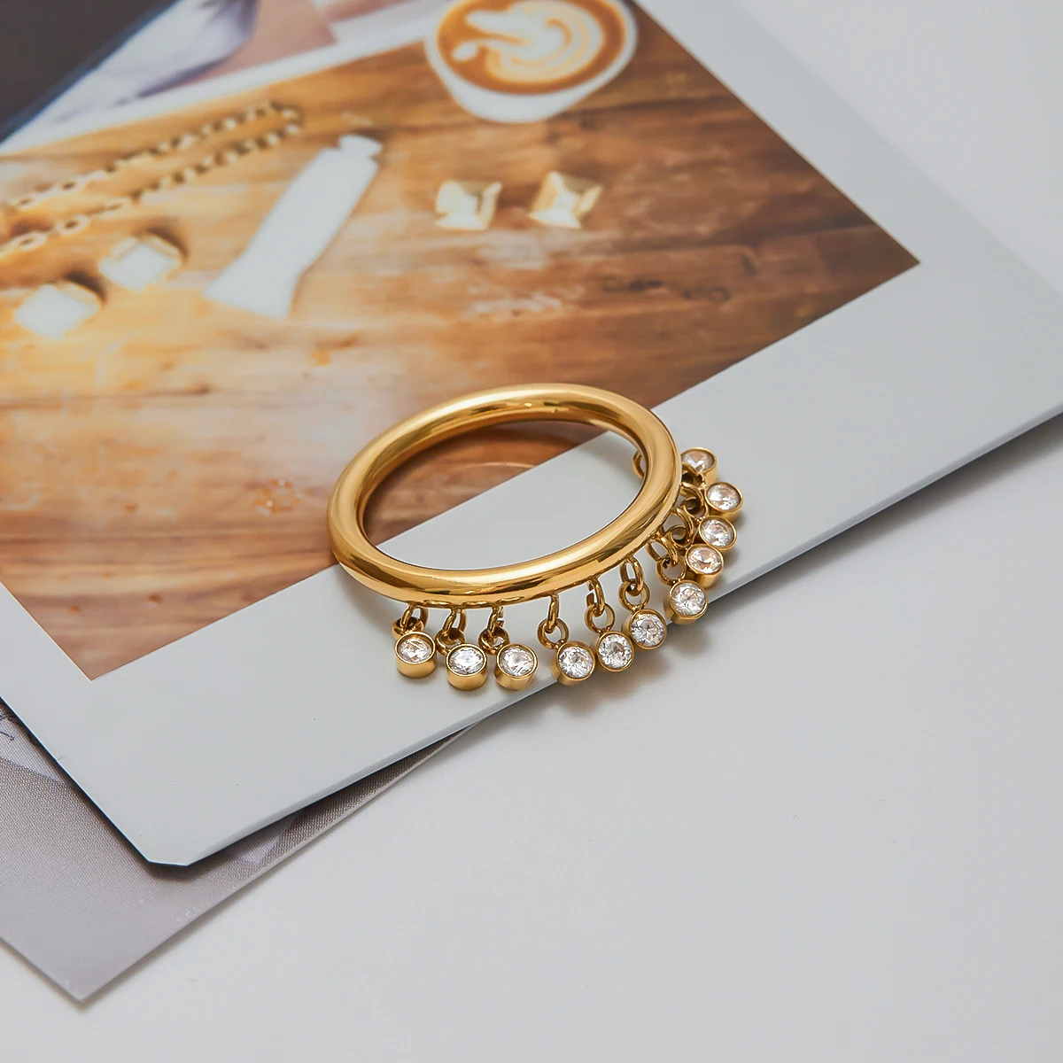- Technical specifications: Stainless steel construction, gold-tone finish, 2mm surface width, tension-set white zircon main stone, size 7, 54.4 mm length, suitable for all-day wear.
