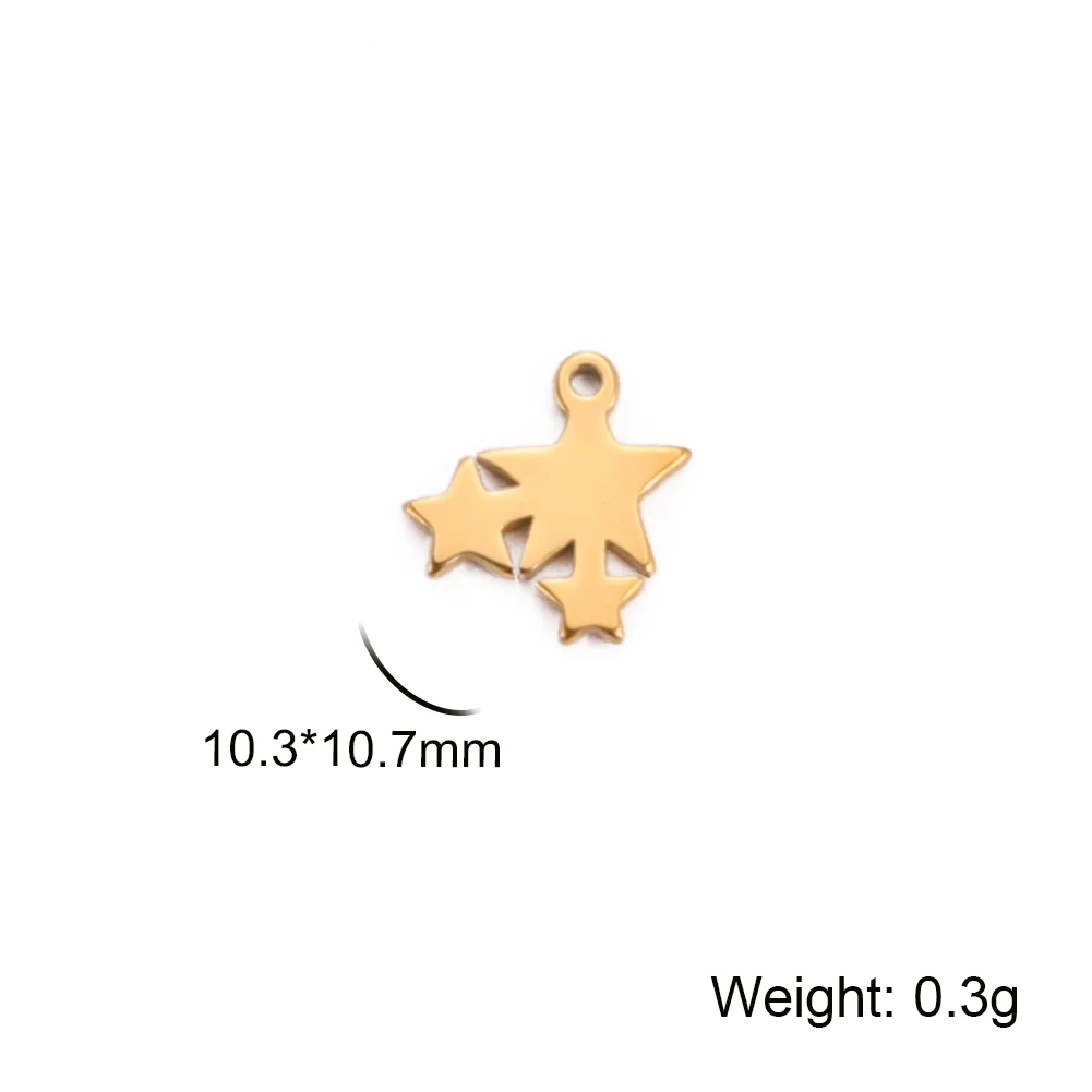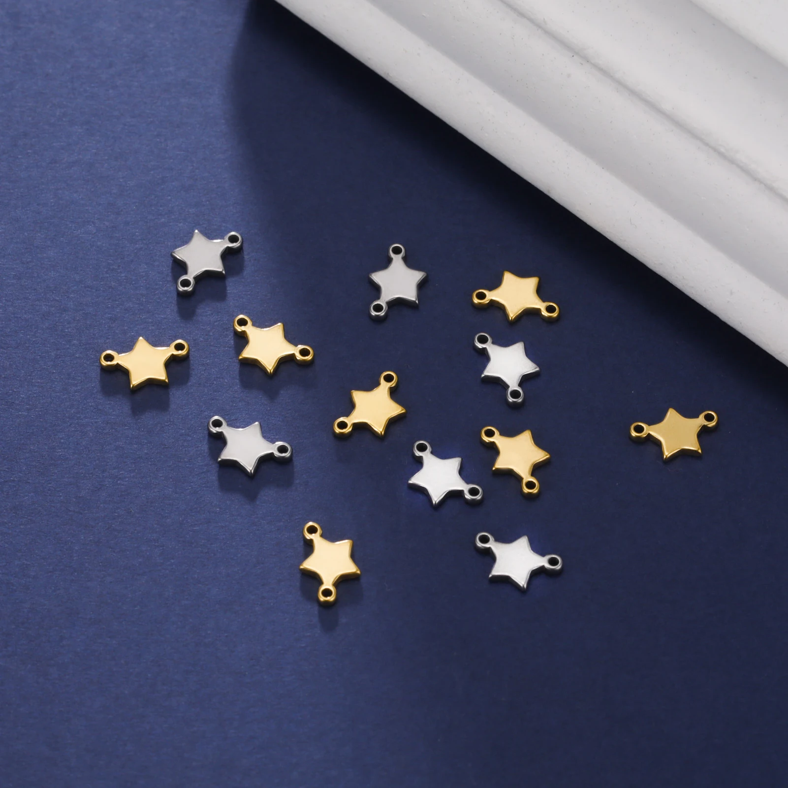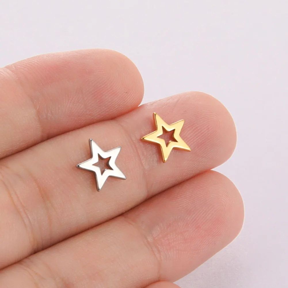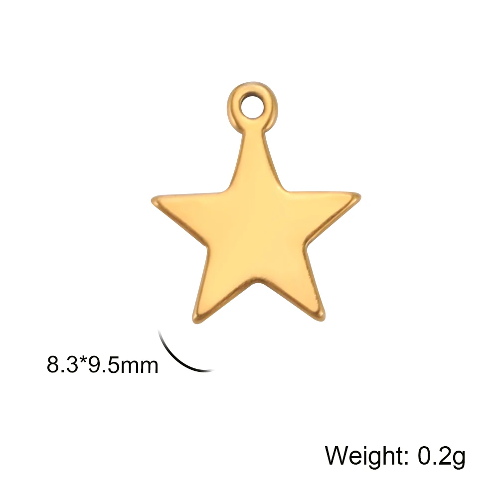 Imagine enhancing your jewelry designs with these stunning star-shaped charms, crafted from high-quality stainless steel. Each piece features a sleek, contemporary design with rounded edges, adding a touch of elegance to necklaces, bracelets, or earrings. Available in a shiny gold vacuum plating or a durable steel finish, these charms bring a luxurious yet modern vibe to your accessories. Their small, lightweight design makes them perfect for creating refined, stylish pieces. Built for durability, they resist rust, corrosion, and deformation, ensuring your jewelry stays beautiful over time. Elevate your craftsmanship by combining these versatile star charms to create personalized, fashionable jewelry collections that speak to your unique style and creativity.