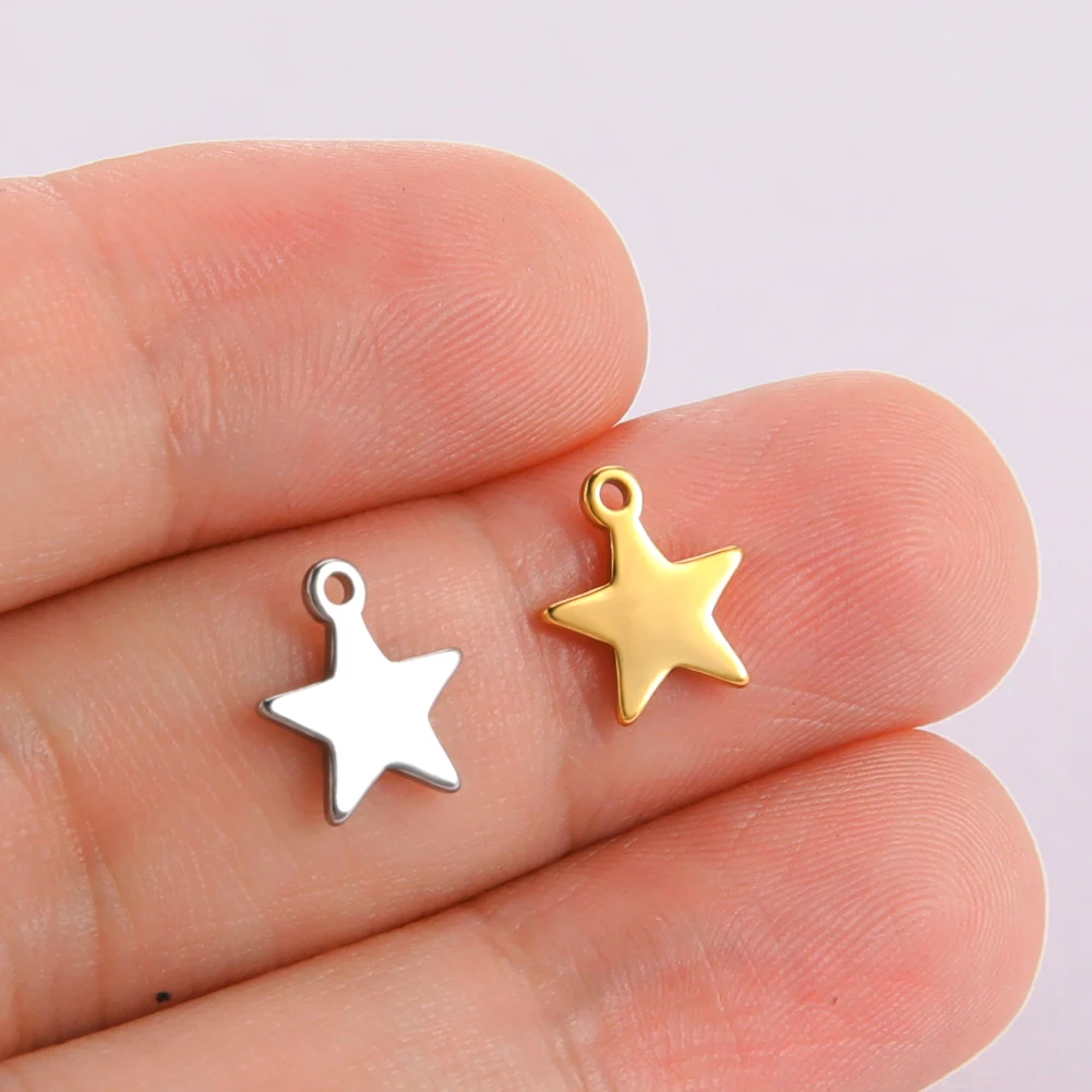 Your creative journey begins here. Whether you're designing for personal style or creating jewelry for clients, these high-quality stainless steel star-shaped charms will help you craft stunning, durable accessories. Their versatile design and expert craftsmanship mean you can confidently use them to elevate any jewelry piece. With a wide range of finishes and colors, these charms are perfect for expressing your unique style. Add a touch of celestial elegance to your collection now and enjoy making beautiful, lasting jewelry that reflects your creativity and passion.