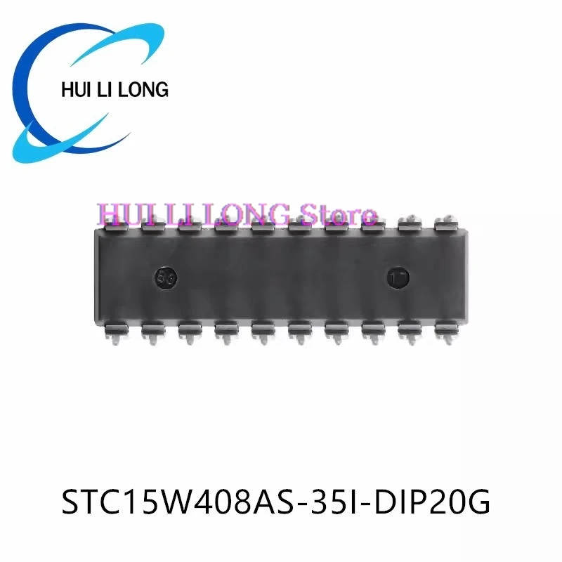 Experience precision and reliability with this high-quality STC15W408AS-35I microcontroller, ideal for voltage regulation, switch, and sensor applications. Its sleek black rectangular design features a smooth matte finish, ensuring a professional appearance suitable for various electronic projects. The top surface displays engraved white text, including the model number “15W408AS” and branding details like “HUI LI LONG,” offering clarity and authenticity. The DIP-20 package incorporates 20 gold-colored pins, evenly spaced along the longer edges, providing secure connections on your circuit board. Designed for optimal performance, this original, new controller chip seamlessly integrates into computer-related electronics, delivering stable voltage regulation and sensor control. Its minimalist aesthetic reflects its technical sophistication and durability in demanding environments.