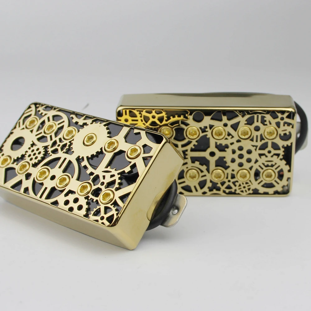 - Two pickups with metal housings decorated by intricate gear and cog cutouts for a distinctive steampunk-inspired look. The design offers aesthetic appeal and visual uniqueness on your guitar.