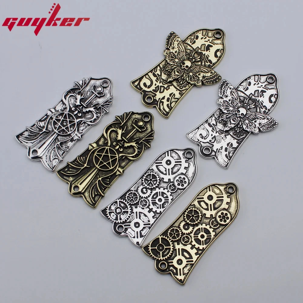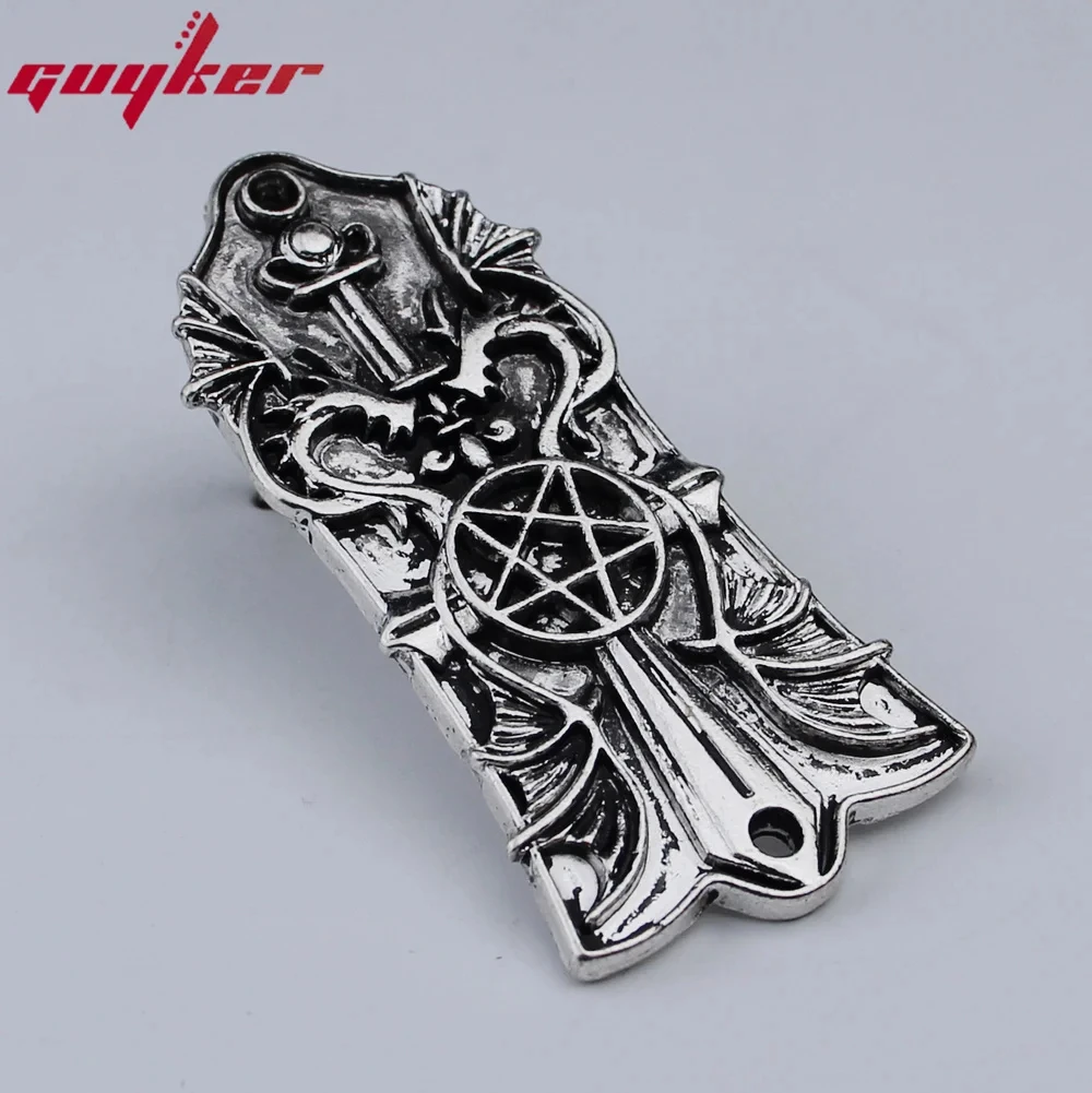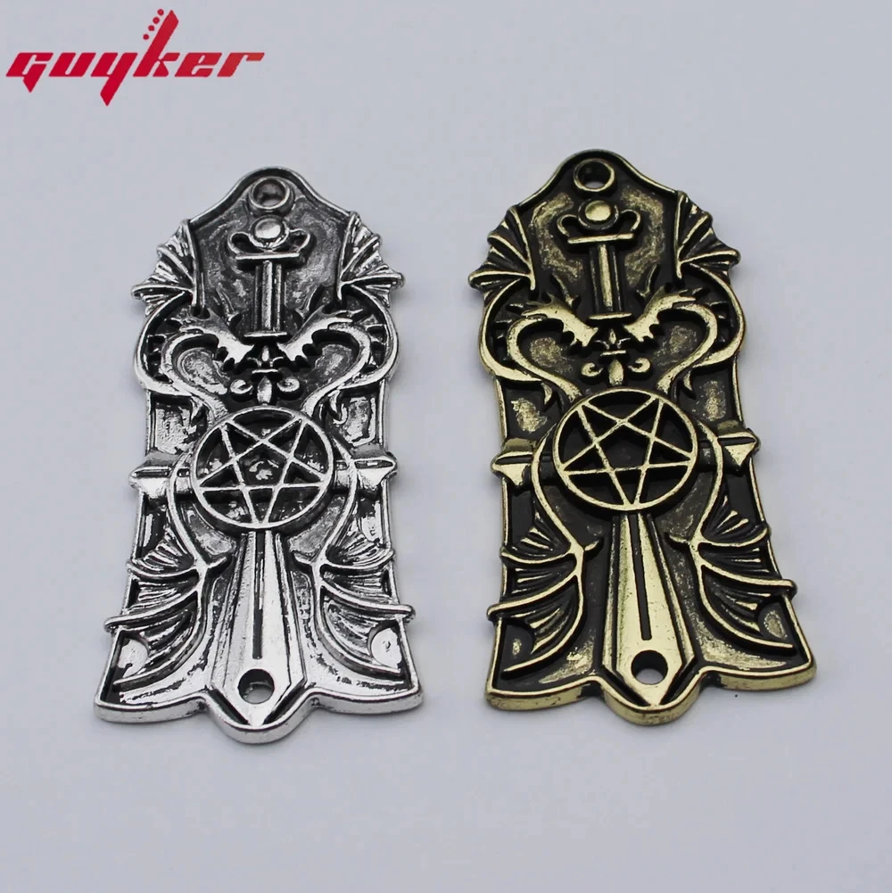 Imagine customizing your guitar with this stunning metal head cover that combines industrial charm and artistic craftsmanship. Crafted from durable metal and plastic, this decorative piece weighs around 200 grams, ensuring a sturdy yet elegant addition to your instrument. The vintage silver or gold finish enhances the steampunk aesthetic, with intricate, raised gears and cogs creating depth and texture. Designed with a subtly rounded top and tapered bottom, it fits seamlessly onto your Les Paul-style guitar. The precise placement of two holes guarantees an easy installation, giving your guitar a distinctive, mechanical look that stands out. Elevate your guitar's appearance with this decorative and functional accessory.