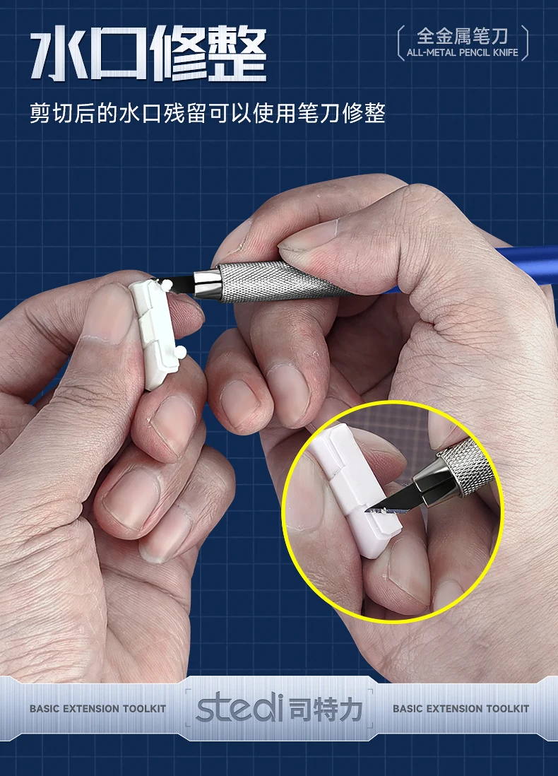 - This set includes precision cutting pliers with a durable blue handle and fine, sharp blades for detailed trimming work, making complex model assembly easier and more accurate.
