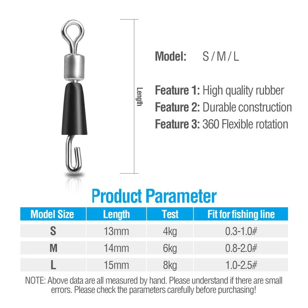 - Size L (15mm, 8kg pull, compatible with 1.0-2.5# lines) perfect for heavier rigs, providing secure connection and reliable performance.