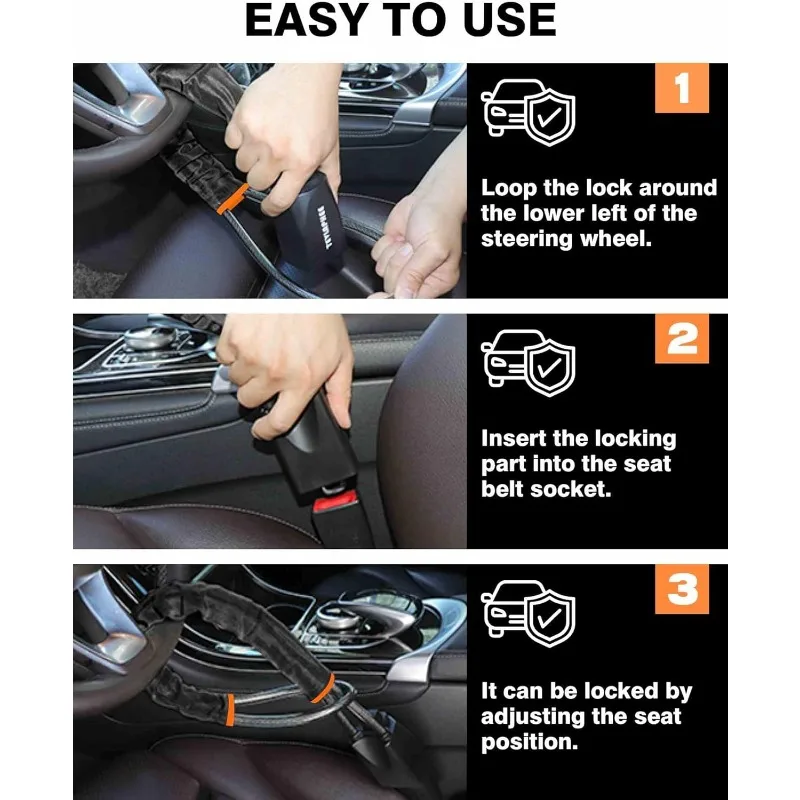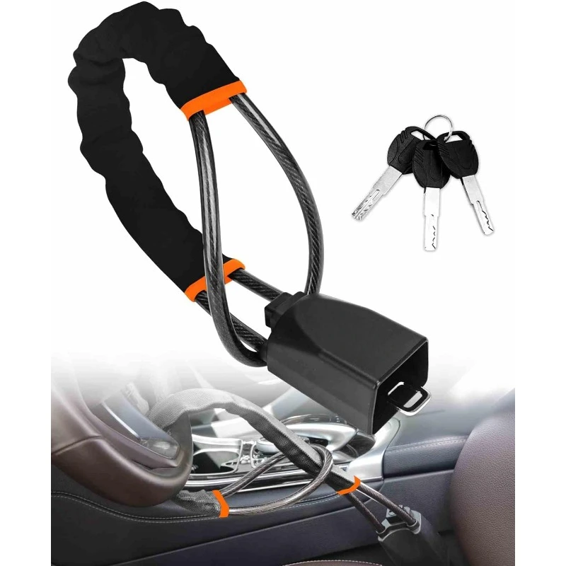 Transform your vehicle's security with this sleek and durable steering wheel lock. Crafted from sturdy steel wire, it measures up to 17″, providing a flexible yet solid barrier that prevents theft attempts. The black coating not only offers an unobtrusive, minimalist look but also enhances surface durability and protects against corrosion. Designed for easy installation and removal, it fits most vehicles and offers quick securing of the steering wheel and seatbelt buckle, serving as a top visual deterrent. Its lightweight and compact profile means you can carry and use it effortlessly, making it ideal for daily use or when leaving your vehicle unattended. Strength, style, and practicality combine in this essential car security device.