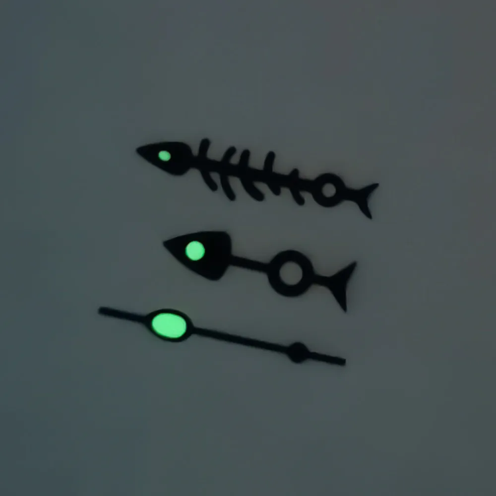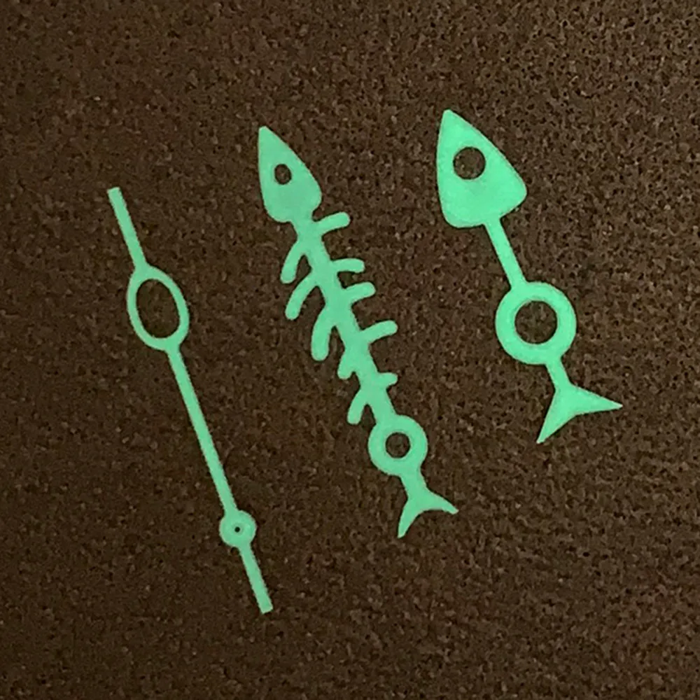 Transform your timepiece with these Steel Fish Bone Needles Watch Hands, designed to add a unique flair to your wristwatch. Crafted from durable 316L Steel, they showcase a striking fish bone shape that harmonizes aesthetics with functionality. Available in three captivating colors—partially luminous white, fully luminous white, and partially luminous black—each hand is designed to glow in the dark, enhancing visibility and style. The watch hands measure 8x12x12.5mm, perfectly suited for NH35, NH36, 4R, and 7S movements, making them an ideal replacement for any broken or worn originals. Elevate your watch into a statement piece with these meticulously crafted hands.