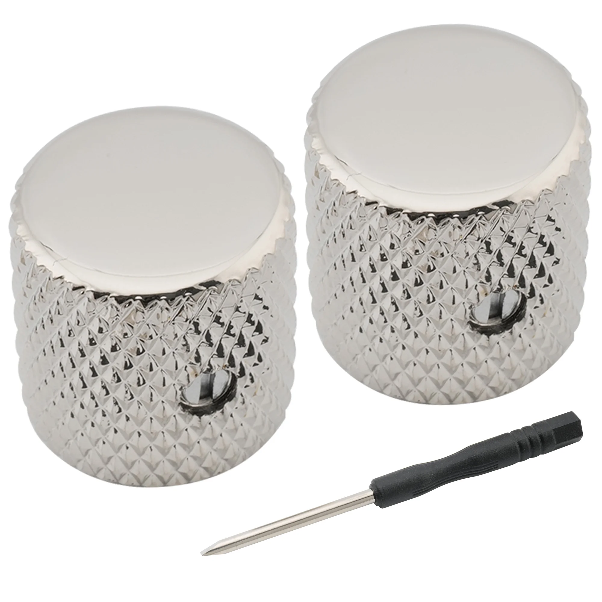 Immerse yourself in the smooth, professional feel of these steel flat-top control knobs, designed to enhance your instrument's look and functionality. Crafted from durable, high-grade metal, they feature a polished, reflective surface—available in chrome, gold, nickel, and black—that adds a sleek, modern touch to your guitar or bass. Each knob has a flat top with a textured, knurled side for excellent grip, providing both style and practicality during adjustments. Measuring 19mm in height and diameter, with a 6.5mm inner hole, they fit most potentiometers, including 6mm solid shafts, coarse or fine spline split shafts, and 6.35mm shafts. Their precise design ensures a secure fit, delivering reliability and a premium feel for your musical setup.