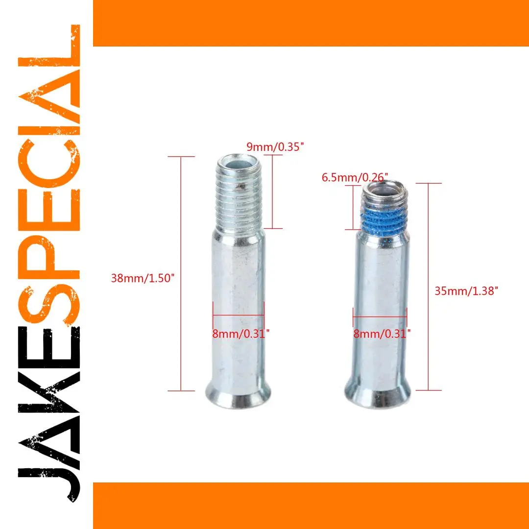 This set of 8 high-quality steel inline roller skate axle screws includes two size options: 6.5mm diameter with 35mm length, and 9mm diameter with 38mm length. Crafted from durable steel, these screws feature a threaded length of 6.5mm or 9mm and an overall length of 35mm or 38mm, with an approximate diameter of 8mm. Designed to screw directly into skate holders, they are compatible with most inline skates except leisure models. The sleek, silver finish and precise threading ensure a secure fit and long-lasting performance, making them an essential replacement part for maintaining your roller skates’ stability and safety.