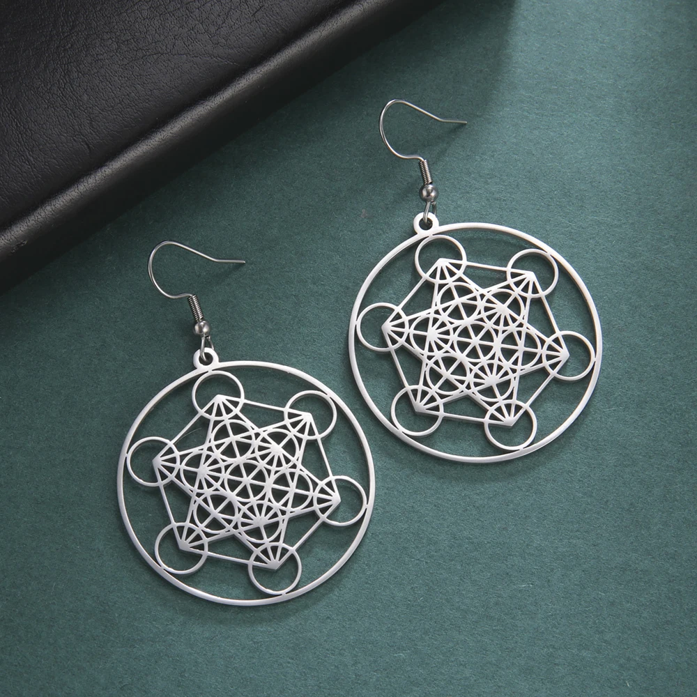 Steel Metatron’s Cube Earrings for Women
