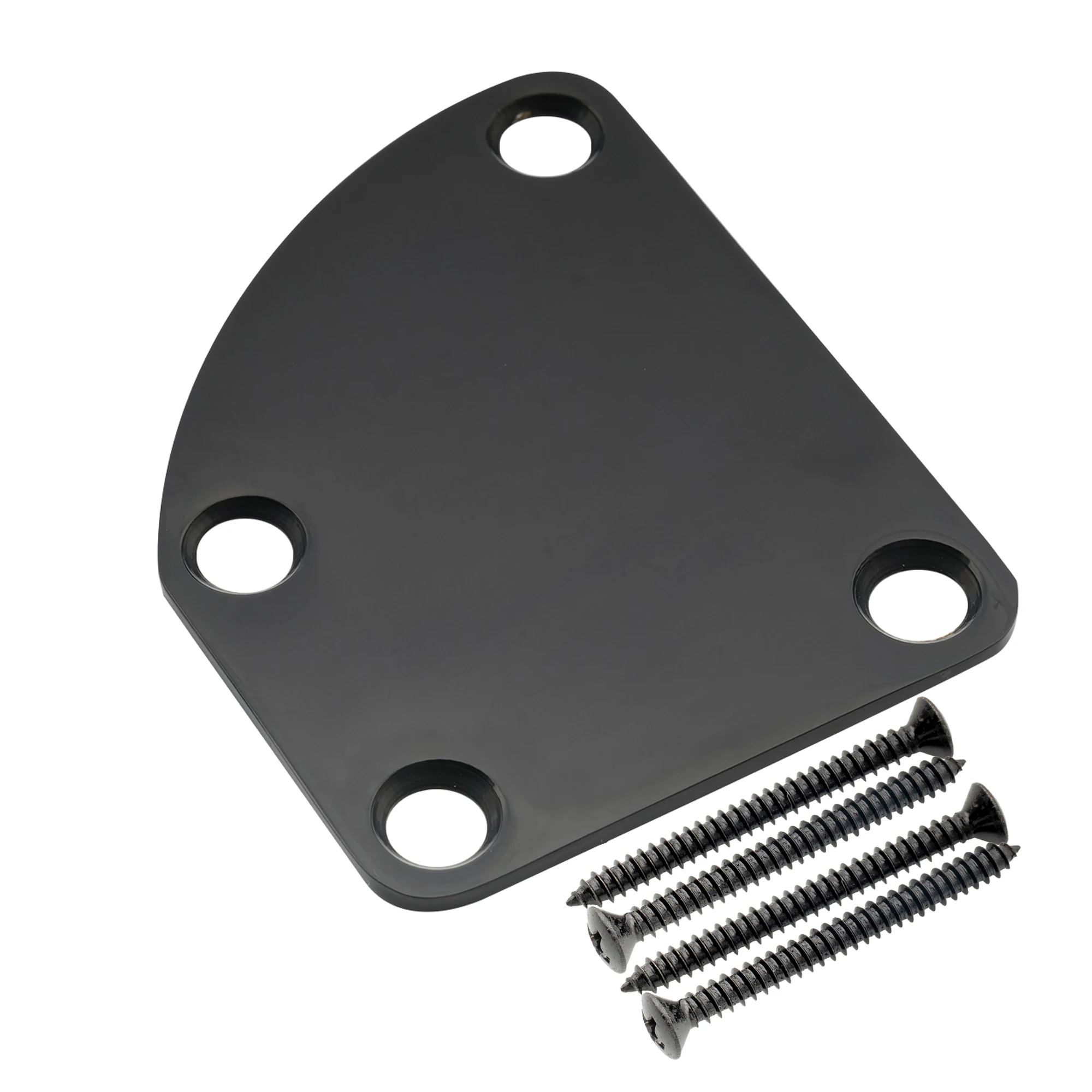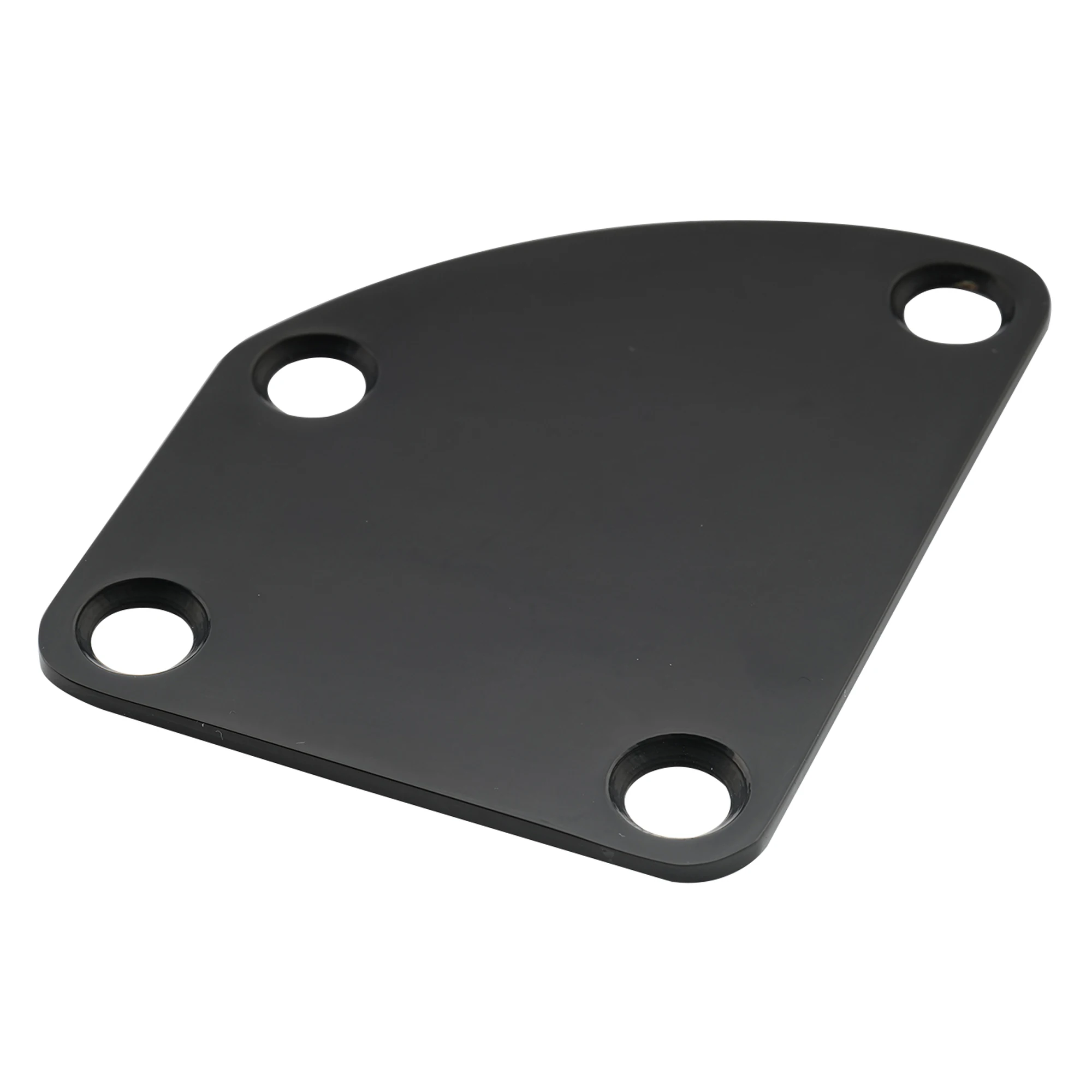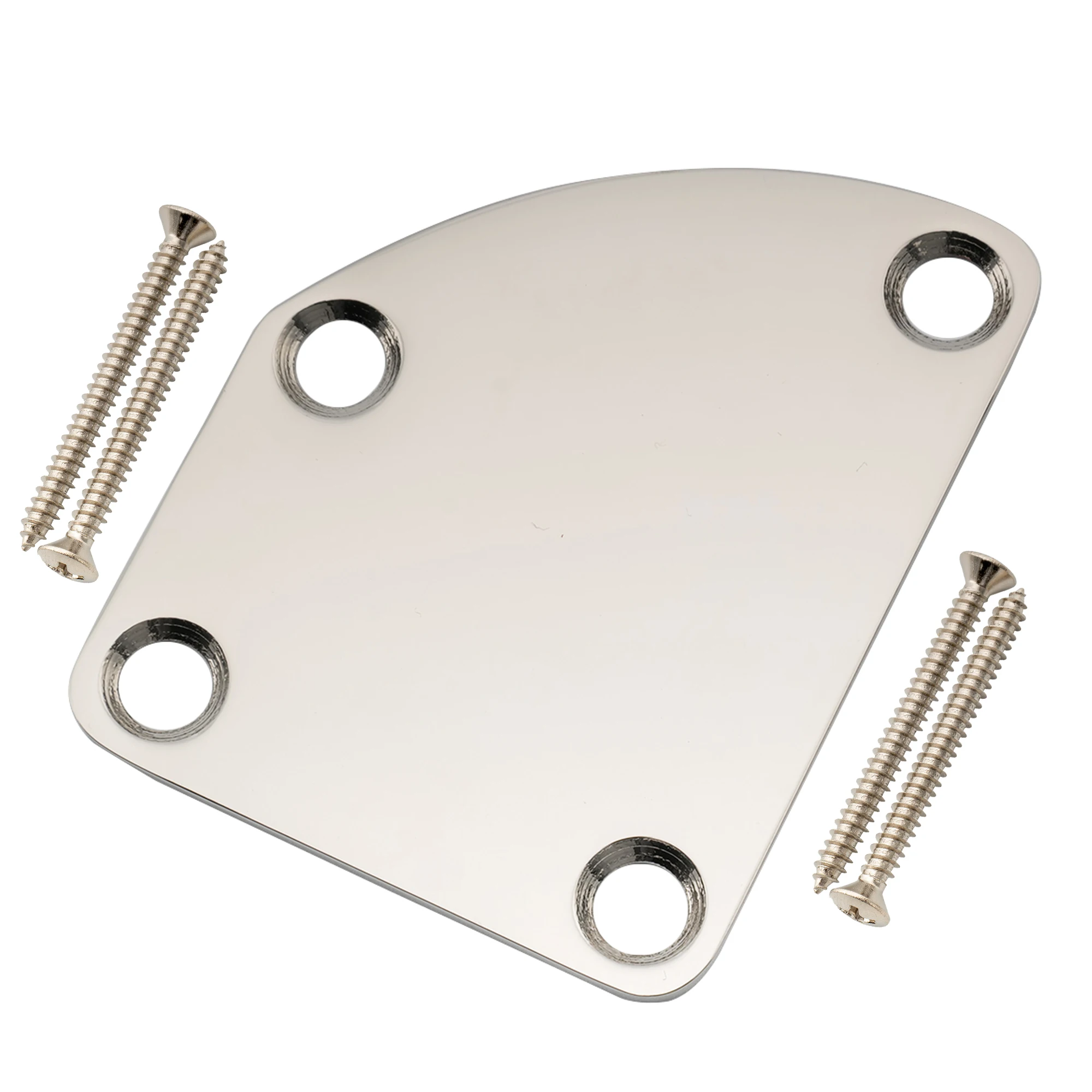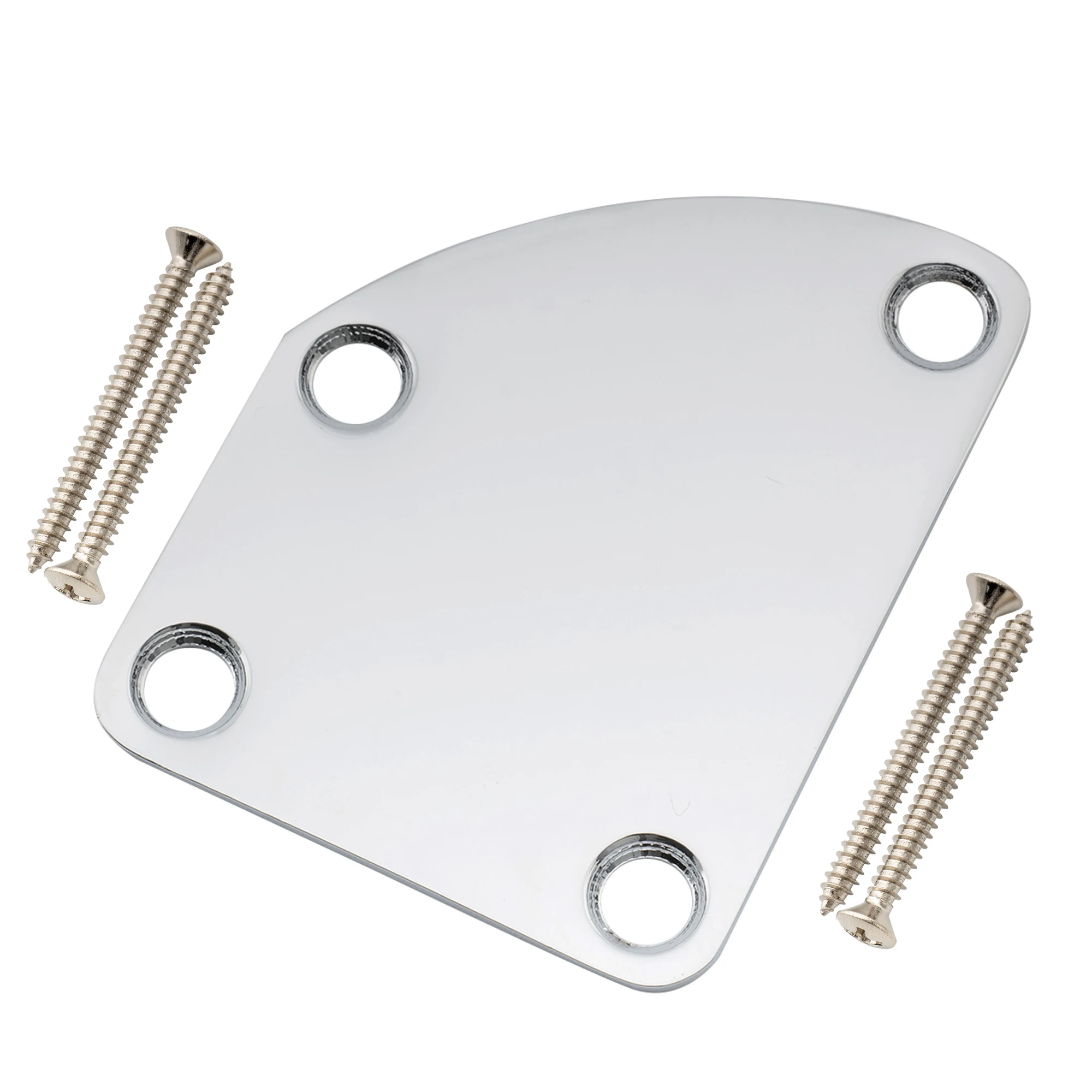 Enhance your guitar or bass with this high-quality steel neck plate featuring a sleek, curved semi-round design. Measuring 64.5mm by 51.5mm with a 2mm thickness, it offers durability and stability. Adjustable screw hole spacing from 26.4mm to 50mm ensures versatile compatibility with various instruments. The plate’s polished finish is available in Chrome, Black, Nickel, or Gold, adding a refined touch to your instrument. Designed for easy installation, it includes four mounting screws, making it an ideal upgrade or replacement part for electric guitars or basses, combining stylish aesthetics with reliable functionality.