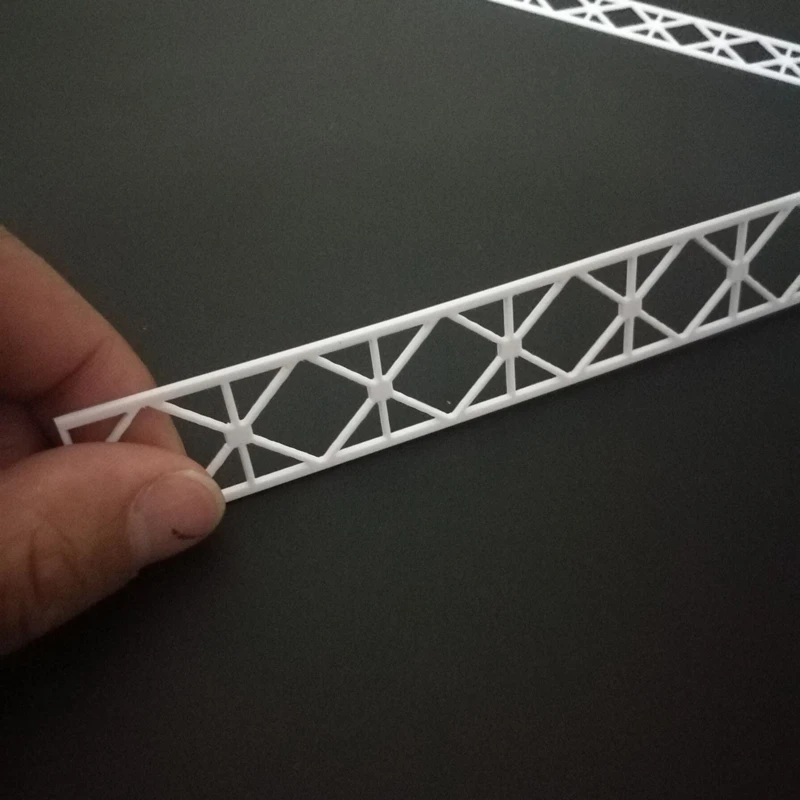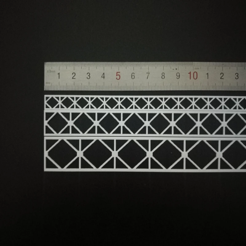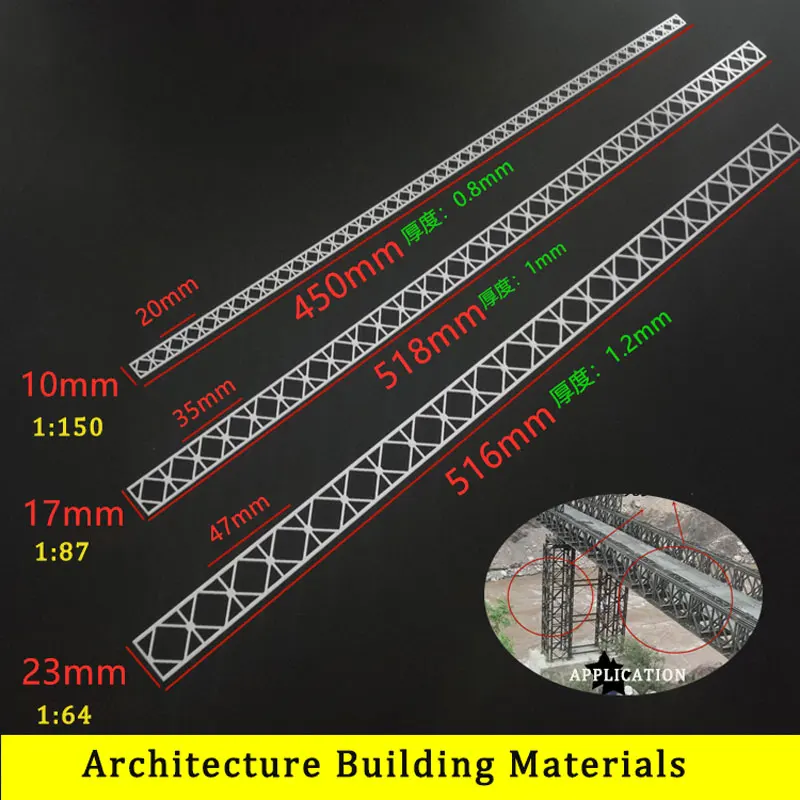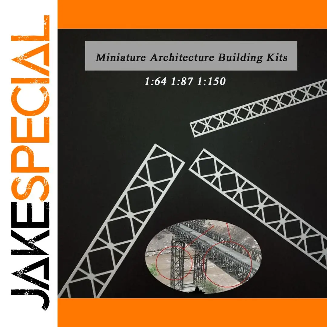 Enhance your diorama or train layout with this white ABS plastic architectural bridge featuring a detailed steel truss design. Measuring a single piece suitable for scales 1:64, 1:87, and 1:150, it showcases an intricate lattice structure with triangular support beams that mimic real steel trusses. Its sleek, minimalist profile is easy to paint or cut to fit your project, offering flexibility for customization. Designed for hobbyists 12 years and older, this fire-resistant, safe-to-modify model is perfect for DIY architectural scenes, providing a refined yet technical aesthetic that brings realism and stability to your miniature landscape.