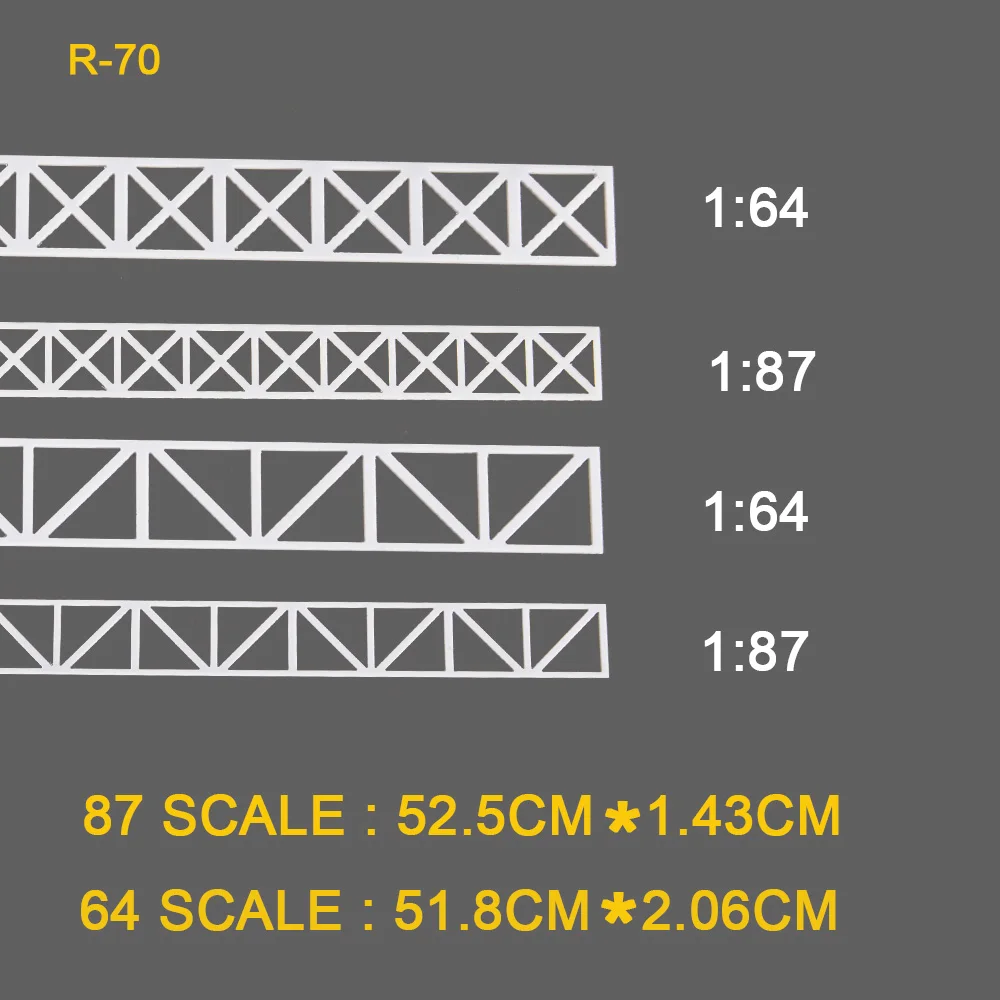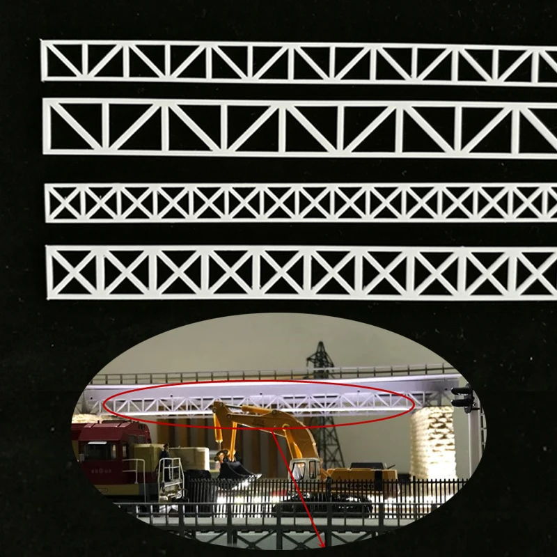 Imagine elevating your architectural and landscape scenes with this expertly crafted model of a steel truss bridge. Made from high-quality white ABS plastic, this miniature structure features an intricate lattice of triangular and rectangular supports, capturing the realistic essence of modern steel bridges. Its sleek design showcases sharp, precise lines with a contemporary industrial aesthetic, perfect for detailed model train layouts or diorama scenery. Available in multiple scales—1:64, 1:87, and 1:150—that suit a variety of project sizes, with dimensions ranging from 10cm to over 23cm. This lightweight yet durable component adds a professional touch to your scenery, elevating the authenticity of your scene. Easy to install, it brings your miniature landscape to life with structural realism and visual harmony.