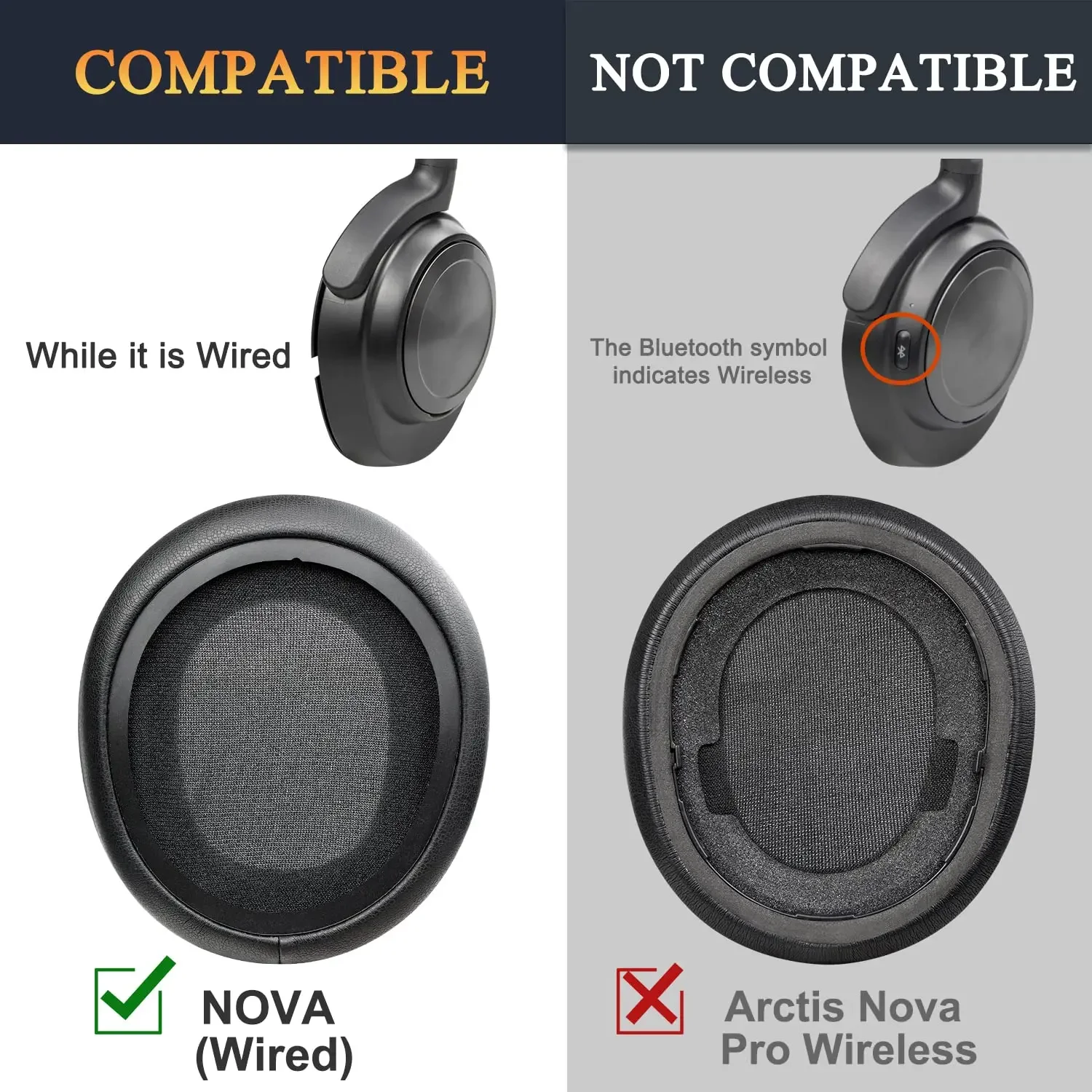 Enhance your SteelSeries Arctis Nova Pro wired headphones with these black replacement ear pads, designed for optimal comfort and performance. Crafted with high-density memory foam for superior noise isolation and long-lasting support, they feature a breathable ice silk fabric surface that includes a cooling gel layer to absorb sweat and keep your ears cool during extended gaming or listening sessions. Easy to install, these durable cushions securely stay in place, offering a sleek, professional look while providing all-day comfort. Compatible exclusively with wired models, they are made from safe, chemical-free materials, ensuring a reliable upgrade for your headset.