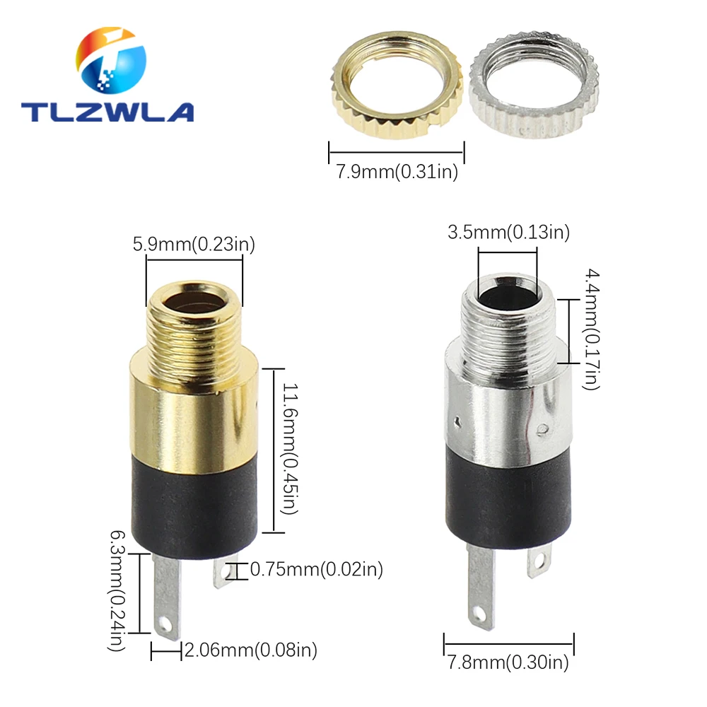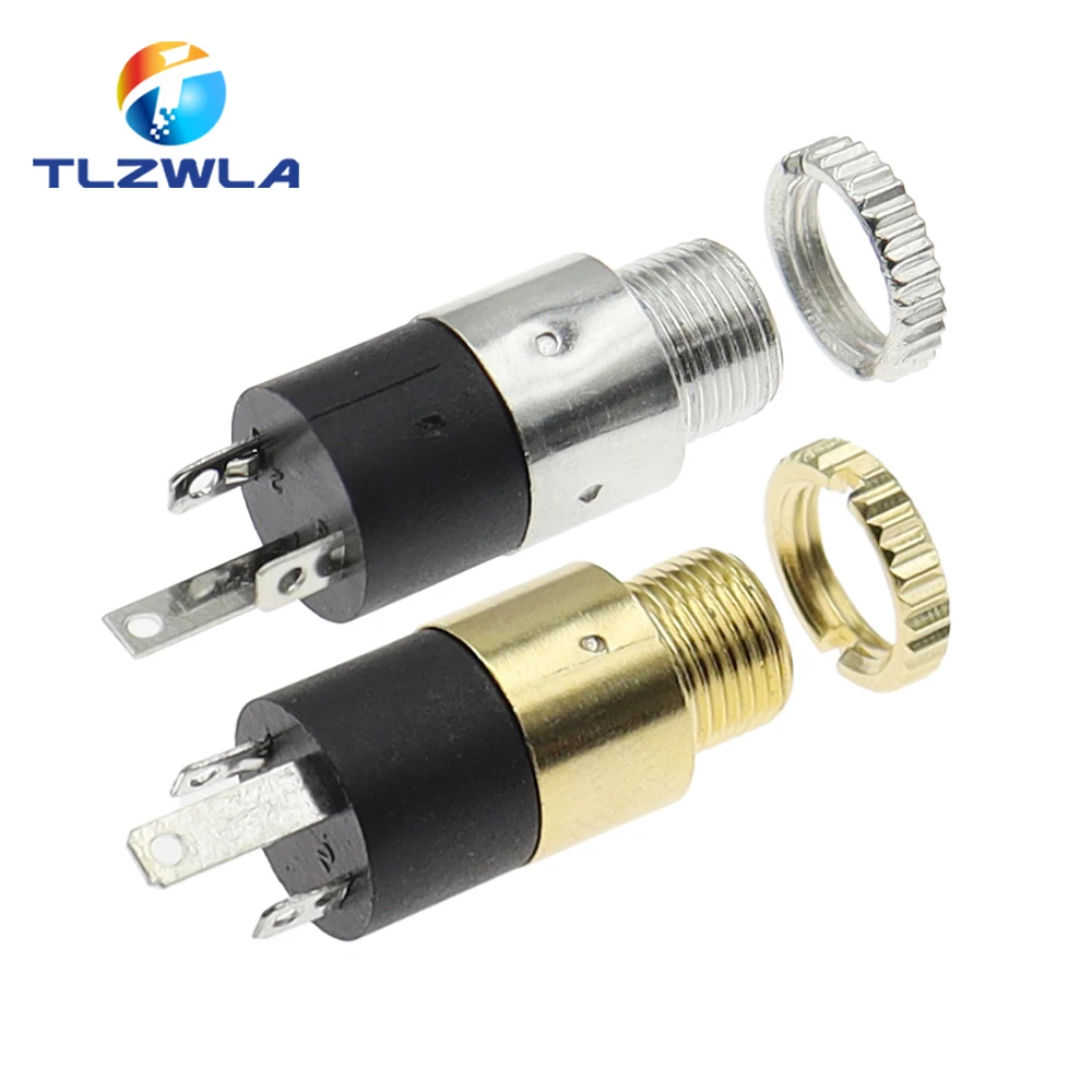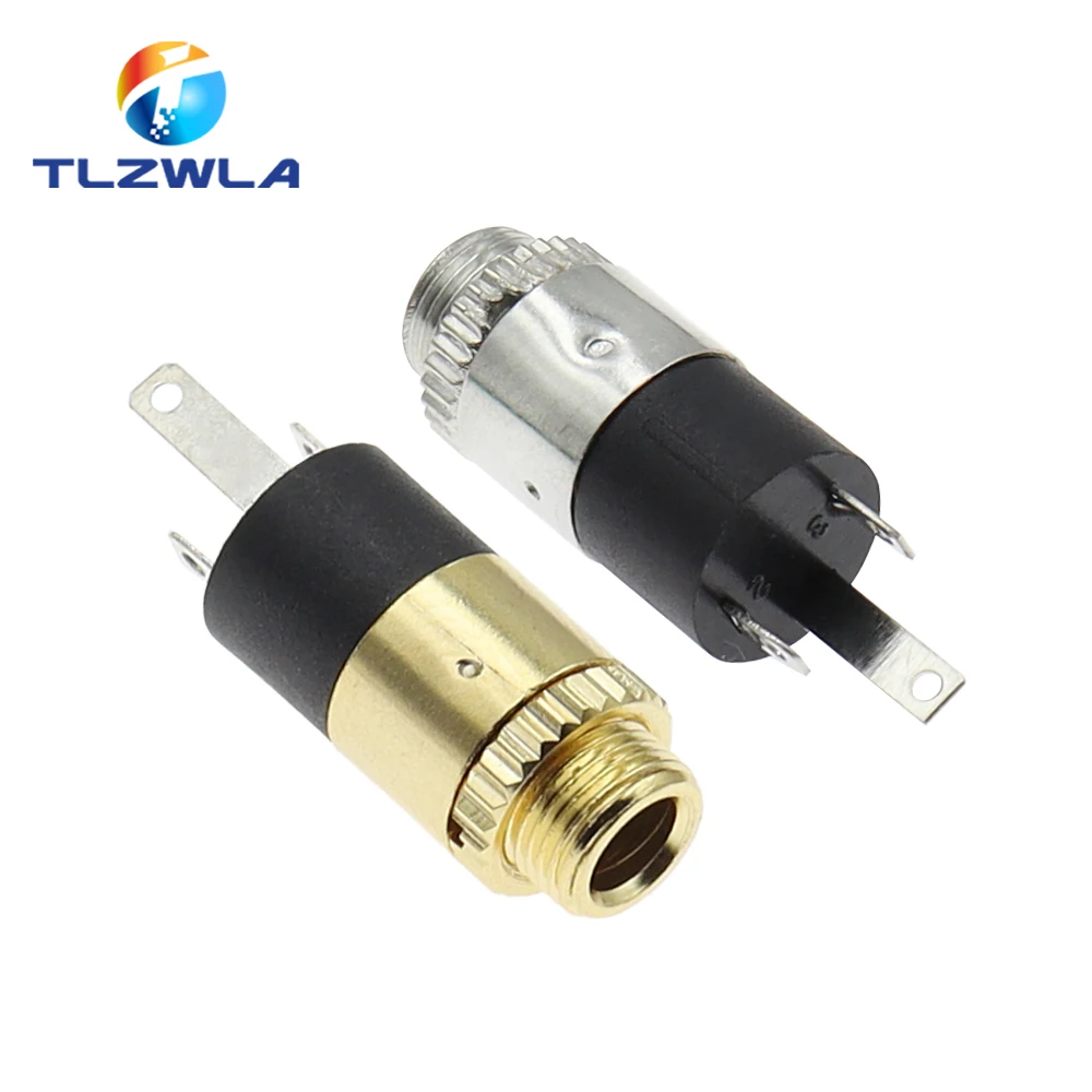 Experience reliable, high-quality connections with this set of 5 cylindrical female sockets featuring 3.5mm stereo jacks, model PJ-392. Each socket boasts a durable black plastic body complemented by gold or nickel-plated metal mounting sections with knurled edges for secure tightening. Designed for audio and video headphone applications, these sockets operate at 24V and include screw mounts for stable attachment. Their polished, corrosion-resistant contact surfaces ensure optimal electrical contact, making them ideal for professional audio, video, or custom electronic projects. Certified with CE and RoHS standards, these sleek, modern connectors combine functionality and durability for expert-grade installation.