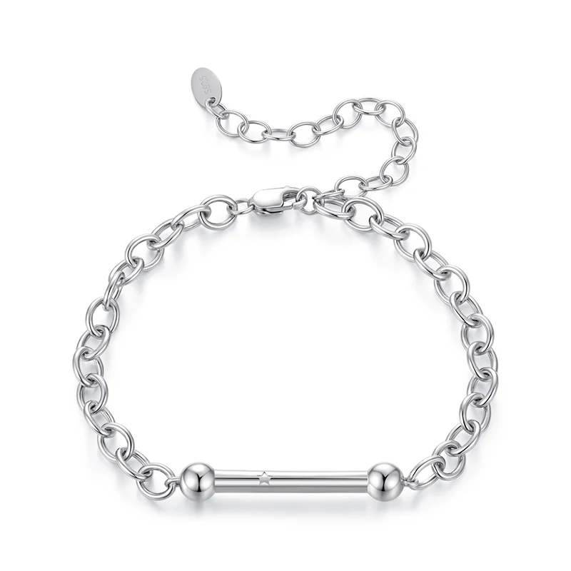 Experience timeless elegance with this unisex sterling silver bracelet featuring a sturdy curb chain design and a refined star-shaped charm. Crafted from 100% high-quality 925 sterling silver, it boasts a polished, reflective finish that enhances its modern and minimalist aesthetic. Ideal for daily wear or special occasions, this bracelet offers versatility with its adjustable 21cm length and a secure lobster clasp. Its substantial, chunky links give it a bold presence while remaining lightweight at approximately 6.7 grams. The hypoallergenic, lead, and nickel-free material ensures comfort for sensitive skin, making it suitable for everyday use, gifts, or meaningful expressions of style and affection. This bracelet combines durability with a sleek, trendy look perfect for any man or woman aiming for a sophisticated touch.