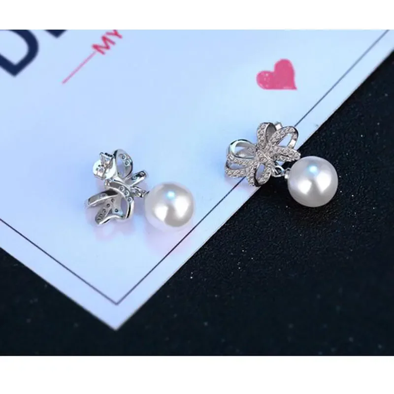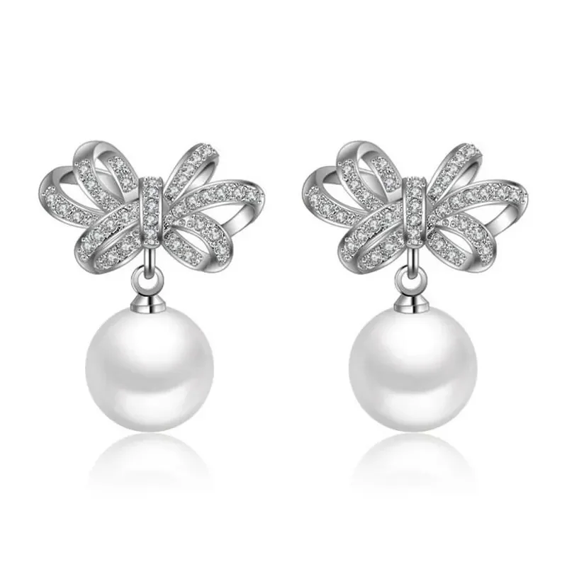 Enhance your jewelry collection today with these exquisite sterling silver bowknot earrings. Perfect for gifting or treating yourself, they combine craftsmanship, beauty, and comfort. Don't miss your chance to own these trendy accessories that elevate any look with their sparkling zirconia and luminous pearls. Experience the charm of high-quality silver jewelry designed to embody femininity and sophistication. Embrace the style you deserve and make every day extraordinary with these captivating earrings.