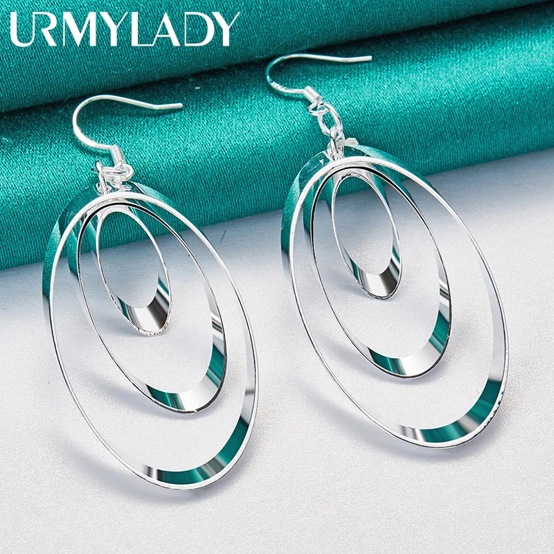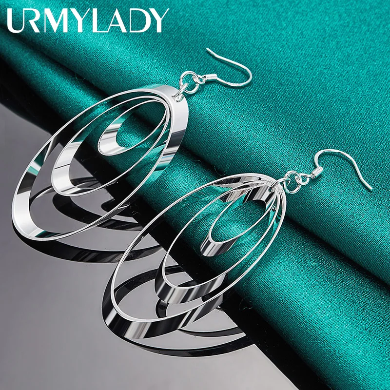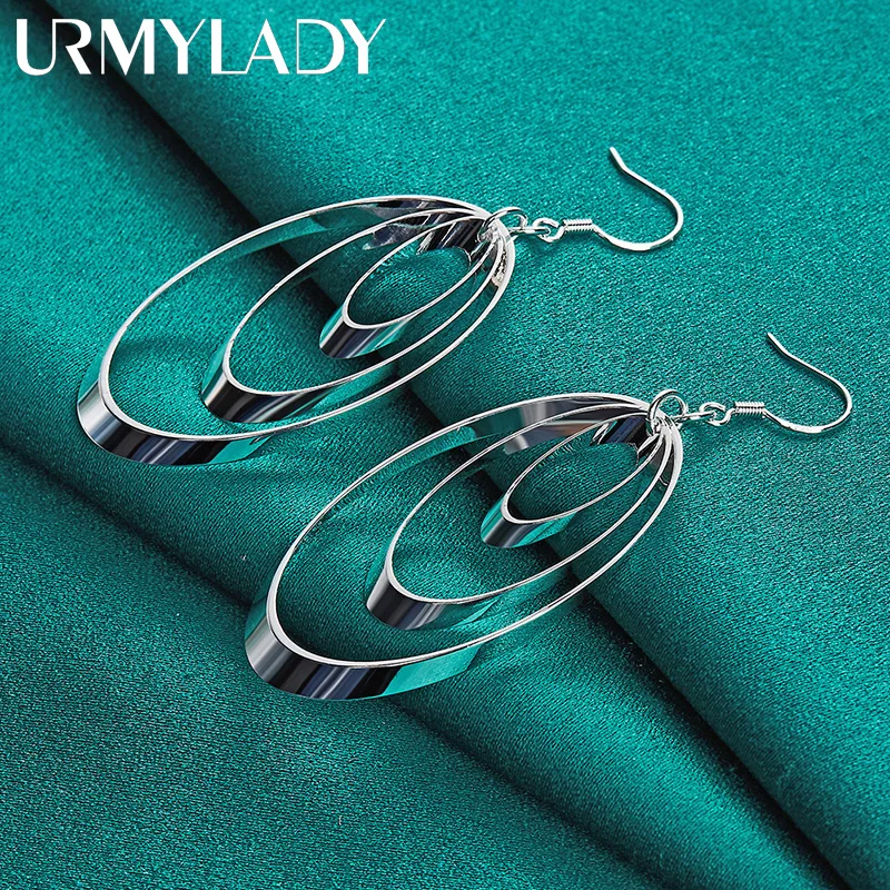 Experience timeless elegance with these URMYLADY 925 Sterling Silver Oval Multi Circle Swirl Drop Earrings, weighing approximately 4.90 grams. Crafted from polished silver with a seamless finish, they feature layered concentric ovals and circles arranged in a flowing swirl pattern, creating a sophisticated, minimalist aesthetic. The tear-drop shaped outer oval gradually tapers inward to smaller, interconnected loops, emphasizing movement and fluidity. Their classic style makes them versatile for weddings, engagements, or formal occasions, while the lightweight design ensures comfortable wear. Perfect for adding a refined touch to your look, these certified jewelry pieces are a stunning choice for any elegant woman.