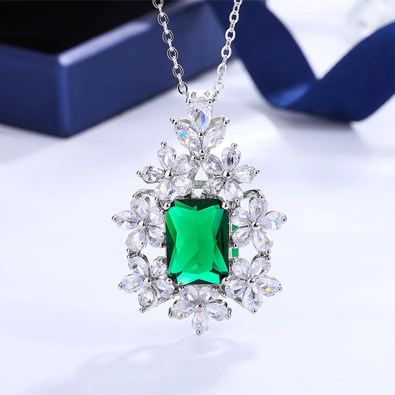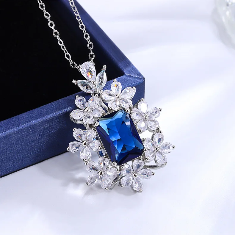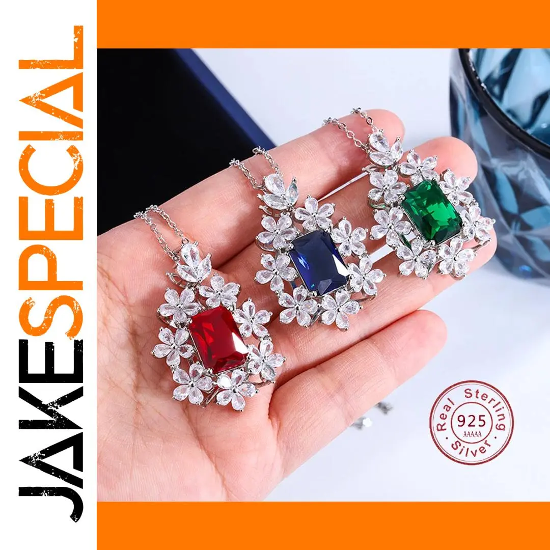 Imagine adding a touch of romance and charm to your wardrobe with this stunning sterling silver pendant. Crafted from high-quality 925 sterling silver, each piece weighs approximately 4 grams, offering durability without sacrificing elegance. The floral design features a large, rectangular gemstone available in vibrant red, serene blue, or lush green, all meticulously faceted to reflect light beautifully. Surrounding the central stone are delicate zirconia stones that create a charming floral border, enhancing the romantic aesthetic. Its silver and white color palette ensures versatility, suitable for both casual and formal occasions. Whether you're celebrating a special moment or gifting a loved one, this pendant adds a unique, feminine touch to any outfit.
