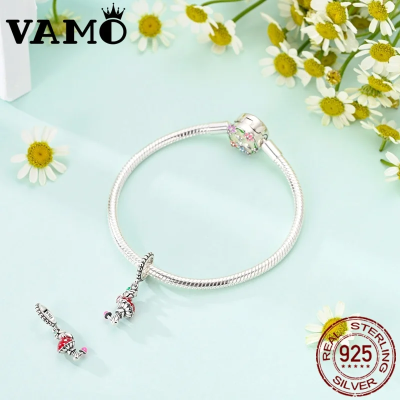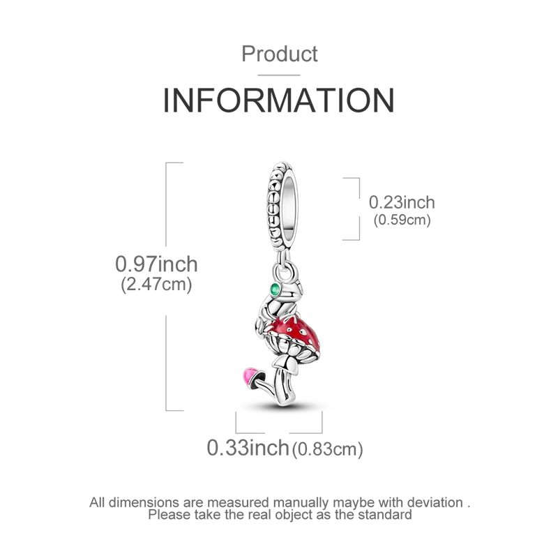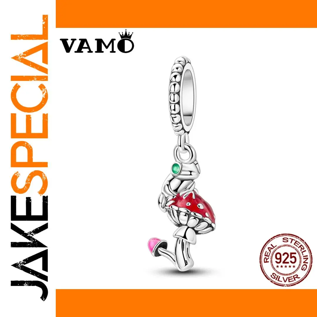 Enhance your jewelry collection with this genuine 925 Sterling Silver charm bead, featuring a whimsical frog and mushroom design in a nugget shape. The vibrant red mushroom cap with white spots, complemented by a small green gemstone embedded in the stem and a tiny pink and black mushroom at the base, create a playful, organic motif. Crafted with a polished, shiny finish, this fine jewelry piece is perfect for bracelet DIY projects, allowing you to personalize and express your unique style. Certified authentic, this high-quality charm is a charming addition to any collection, blending fantasy and nature in a vibrant, eye-catching accessory.