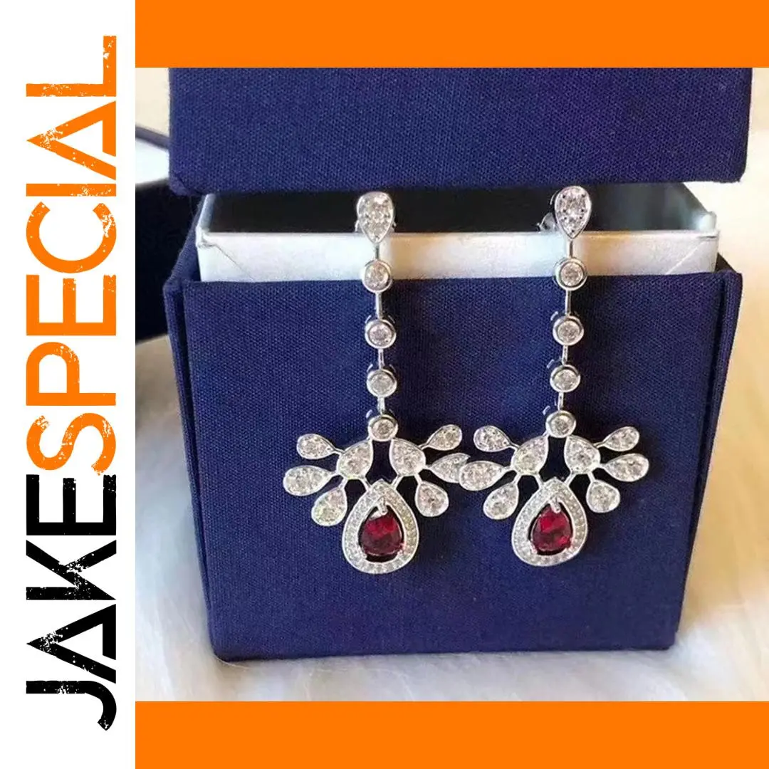 - Features a large, deep red garnet teardrop stone at the bottom, measuring approximately 10mm x 6mm, offering a striking and elegant focal point.