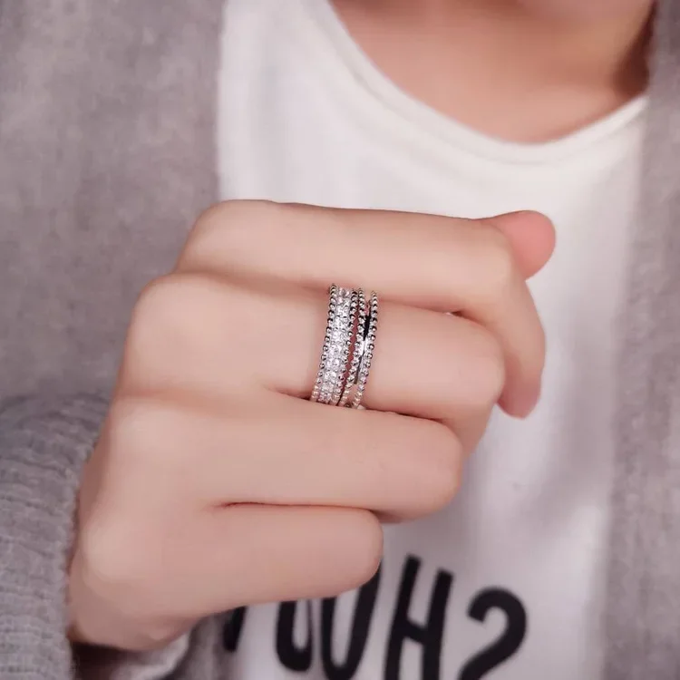 Experience the allure of these stunning sterling silver rings with a sleek platinum tone finish that exudes modern sophistication. Designed with geometric lines and minimalist beauty, these rings perfectly complement your everyday style or special occasions. Each ring features dazzling AAA zircon stones, with one showcasing a smooth, rounded band topped with a row of tiny, sparkling zircon accents for subtle elegance. The other boasts a wider, intricately crafted band with tension-set zircon stones, creating a contemporary focus. Weighing approximately 4 grams, these versatile rings are available in sizes 6, 7, 8, 9, and 10, making them ideal for weddings, engagements, parties, or thoughtful gifts. The contemporary design pairs effortlessly with both casual and professional outfits, emphasizing your sophisticated taste.