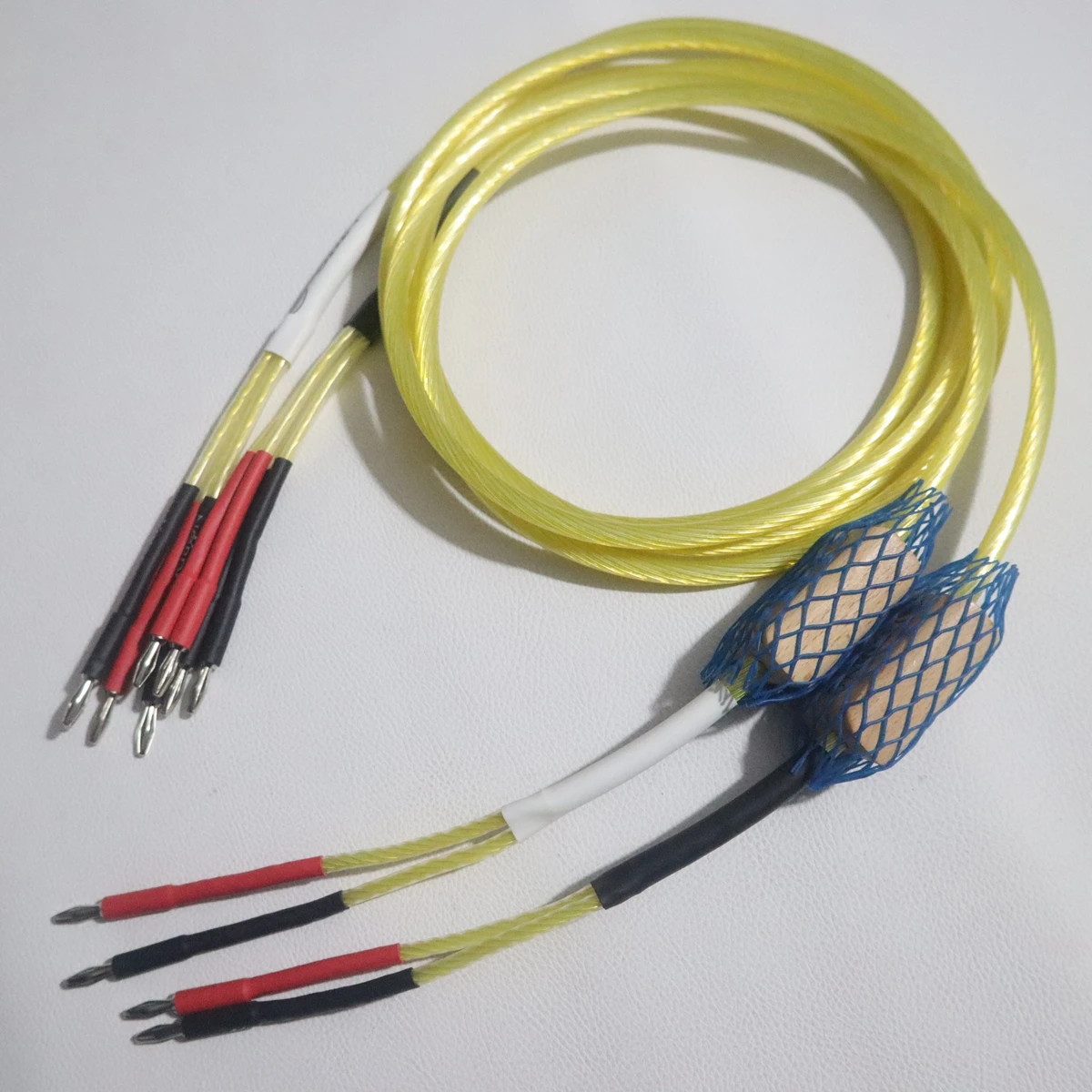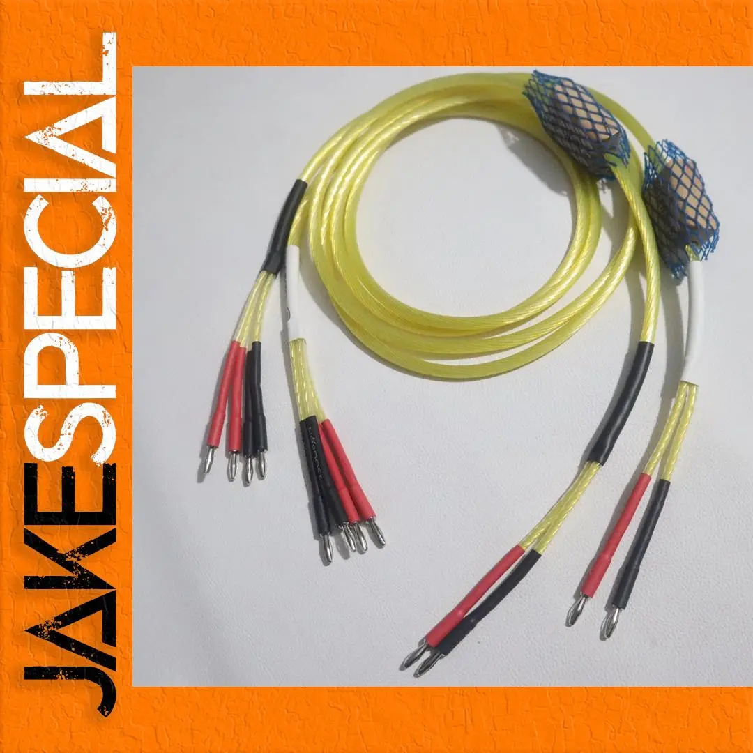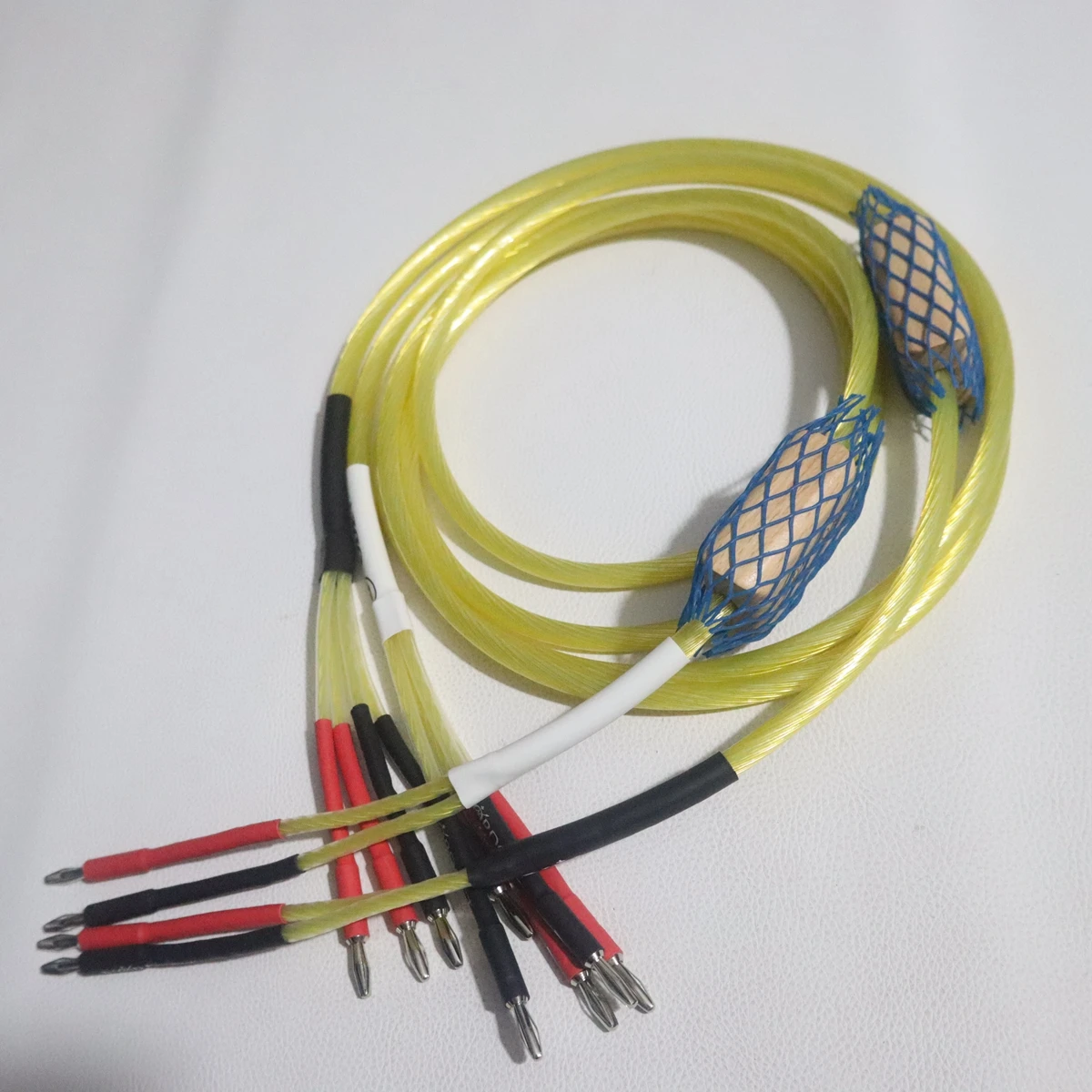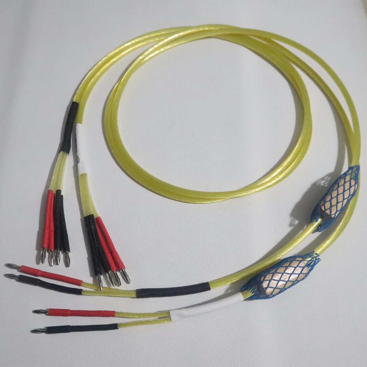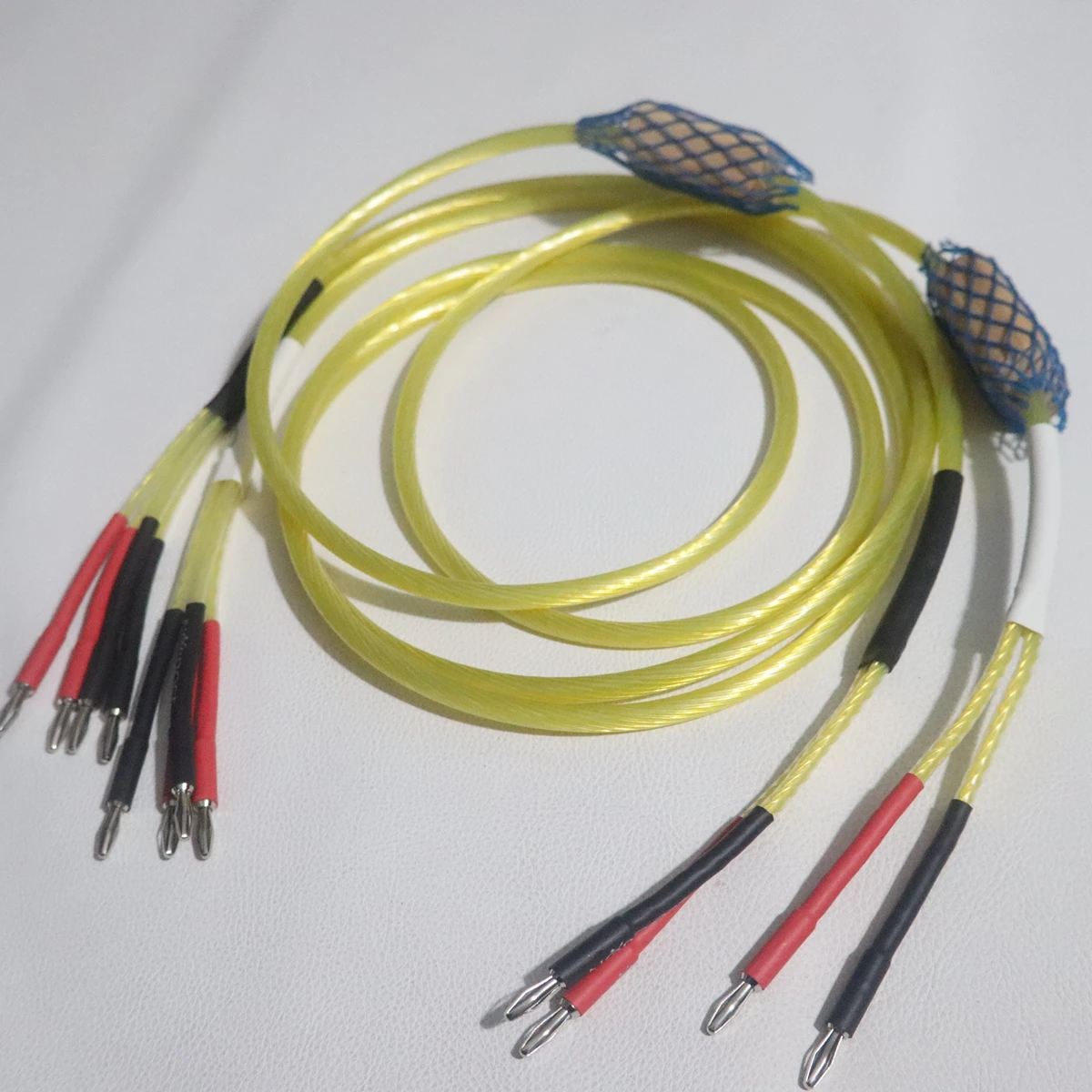 Experience premium audio performance with this high-quality biwire speaker cable, available in lengths of 1.5m, 2m, 2.5m, 3m, 4m, or 5m. Crafted with high-purity 1.003 Teflon (FEP) insulation and a double-layer microspace structure, it features TSC signal control shielding and independent silver winding for each core, ensuring 100% braided shielding for optimal signal clarity. The original conductor wires transmit signals at 90% of light speed, delivering exceptional sound fidelity. Terminated with gold-plated banana plugs (8mm outer diameter), these cables are designed for high-end audio systems, providing reliable connections and sophisticated shielding for a refined listening experience.
