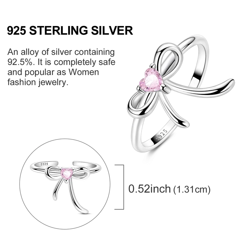 - Features a prominent, sparkling pink zircon in a heart shape, secured with three prongs, providing a vivid pop of color and eye-catching sparkle.
