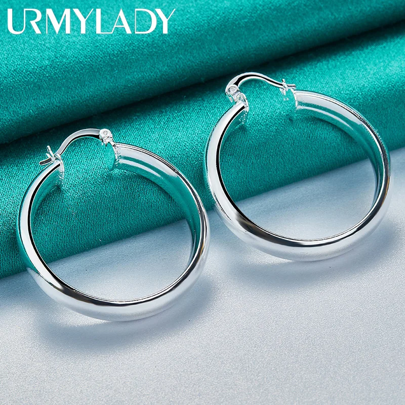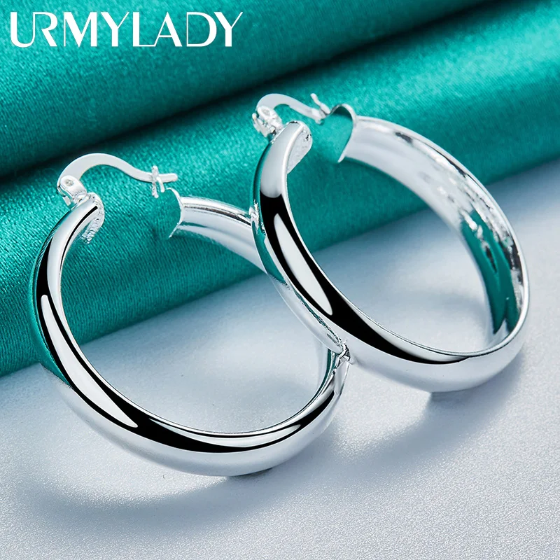 Imagine yourself wearing these stunning sterling silver hoop earrings that effortlessly elevate any outfit. Crafted from high-quality 925 sterling silver, they feature a smooth, polished surface that reflects light beautifully, adding a touch of sophistication to your look. Their classic round shape and bold, rounded profile provide a timeless style that seamlessly transitions from casual to formal events. Whether attending a wedding, engagement, or everyday outing, these earrings exude understated elegance and confidence. Their lightweight design, weighing just 8.20 grams, ensures comfort for all-day wear. These versatile hoops complement any jewelry collection and are sure to become a cherished accessory, highlighting your refined taste and style.