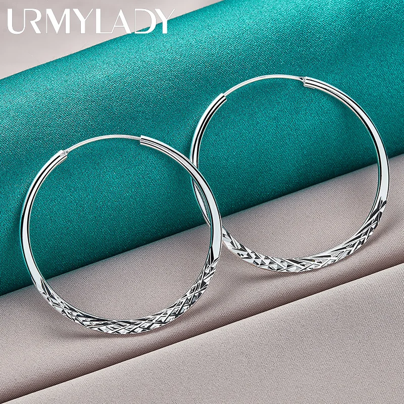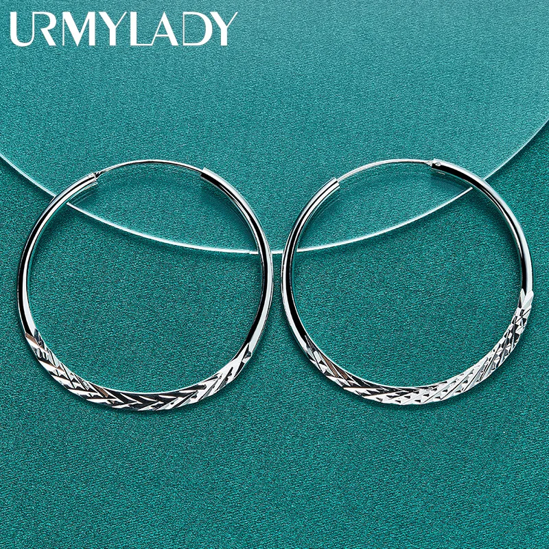 Imagine effortlessly elevating your style with these stunning sterling silver hoop earrings from URMYLADY. Crafted from high-quality 925 sterling silver, these earrings feature a classic round shape with a unique snake design, blending timeless elegance with modern sophistication. Available in three sizes—40mm, 45mm, and 50mm—you can choose the perfect fit to match your occasion and mood. The polished finish reflects light beautifully, highlighting the intricate diamond-cut pattern on the lower half, adding a subtle shimmer. Lightweight at just 10.60 grams, these earrings feel comfortable for everyday wear or special events. Their versatile design makes them suitable for both casual and formal looks, making you stand out effortlessly wherever you go.